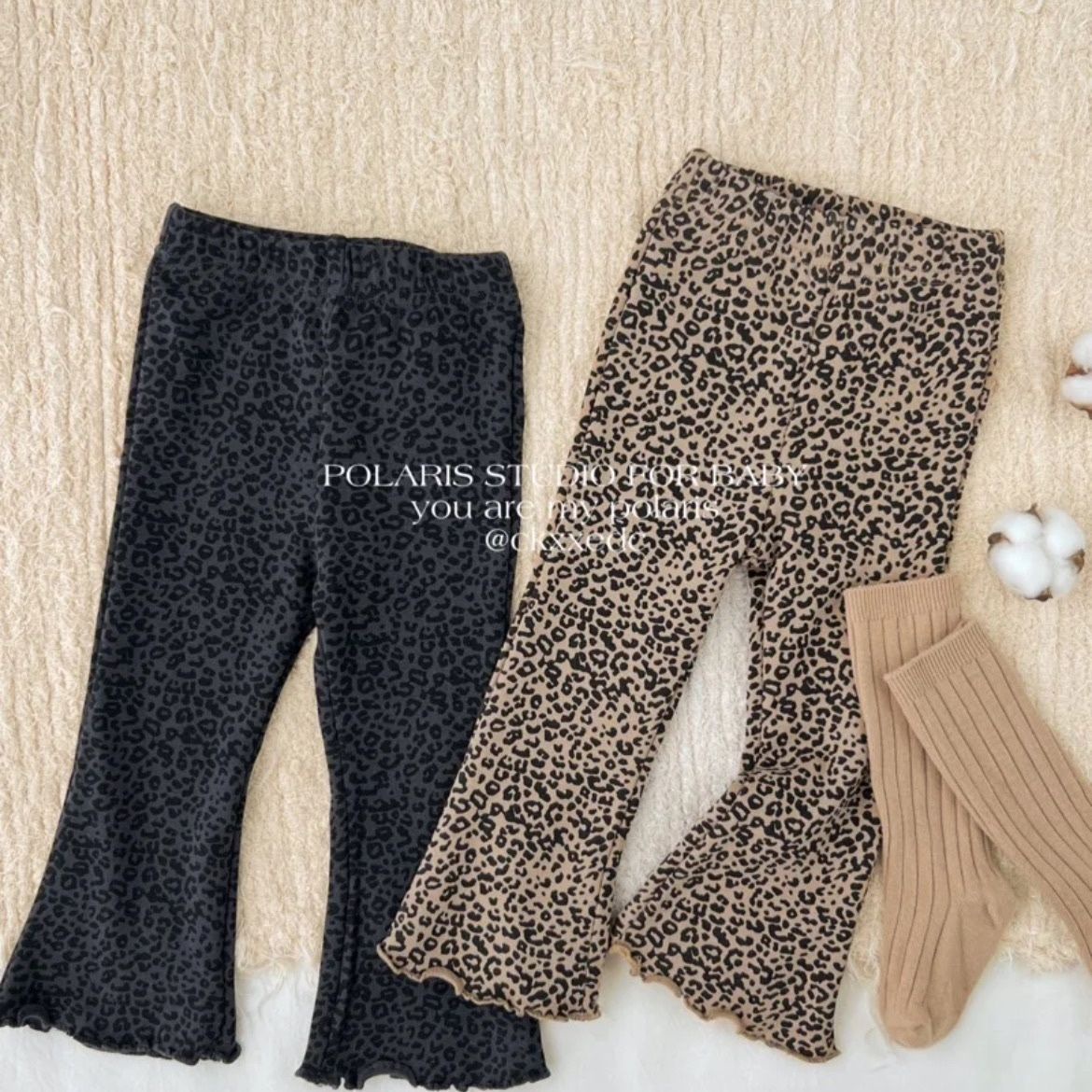 春夏の女の子の子供服のカジュアルなズボンの赤ちゃんの洋気の子供の個性のファッションのブランドの韓国版の木の耳元は底のヒョウの紋様のトランペットのズボンを打ちます