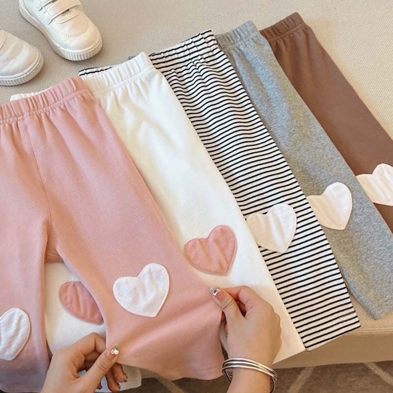 春と秋の女の子の子供服のレギンスの赤ちゃんの洋気の子供の個性の潮牌の韓国版のストライプの愛のパッチのかわいいズボン