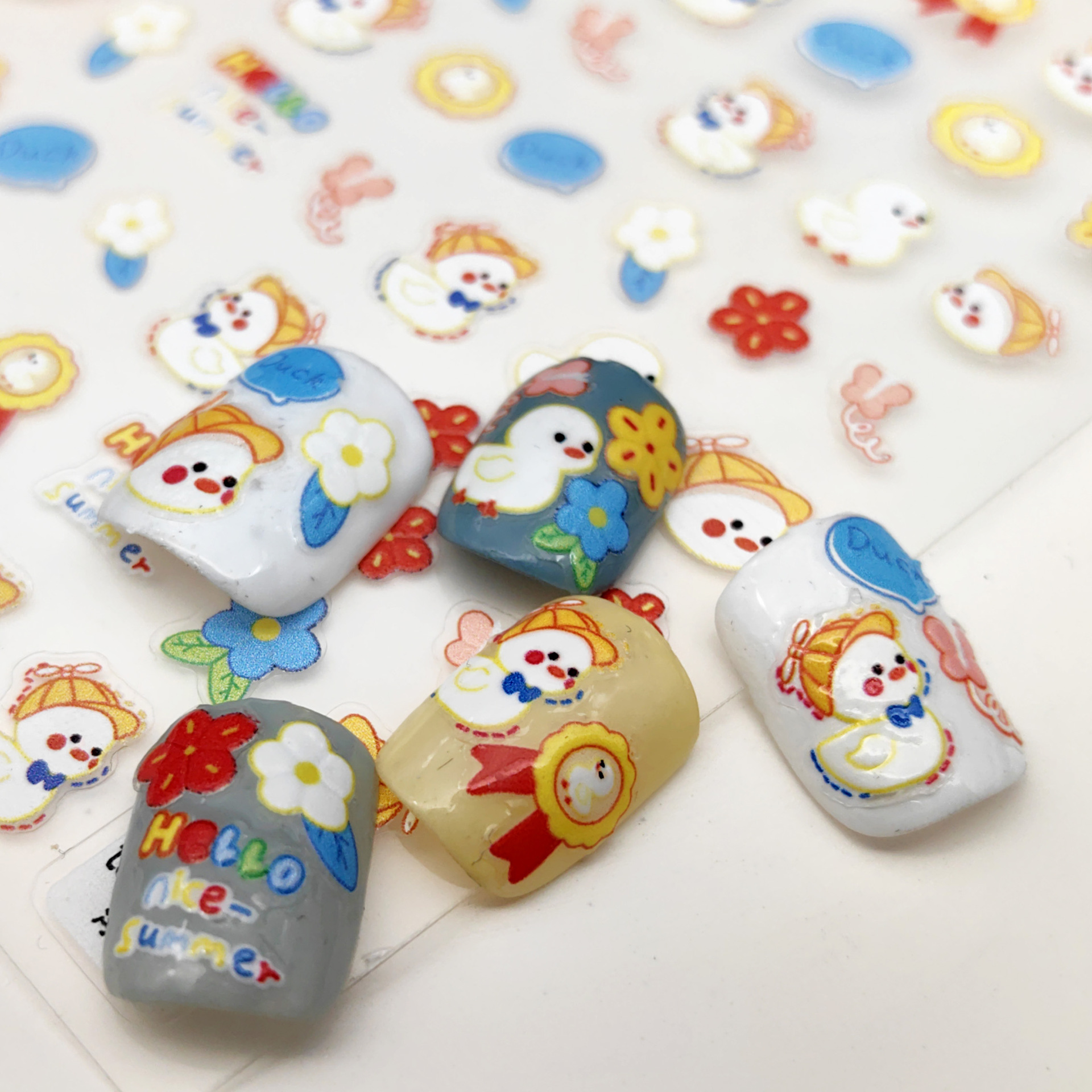 ネイルシール5dアニメアヒルdiy貼り絵小紅書起爆個性レリーフ爪貼り小図案卸売り