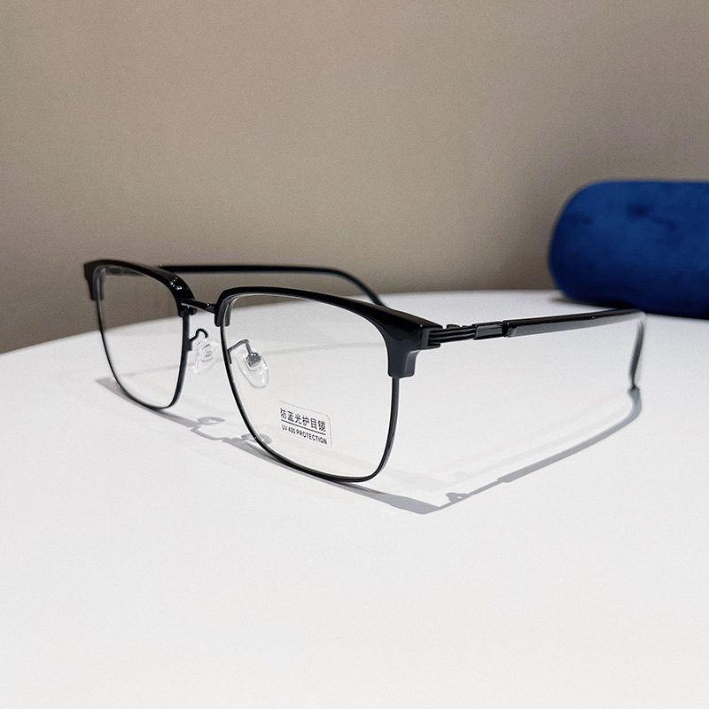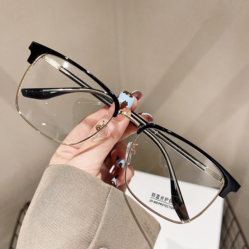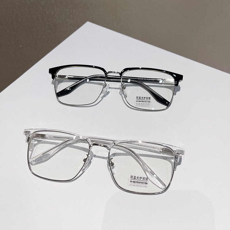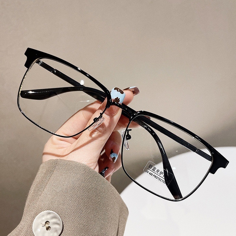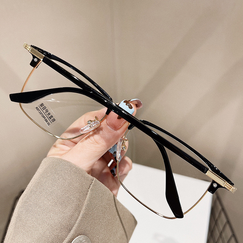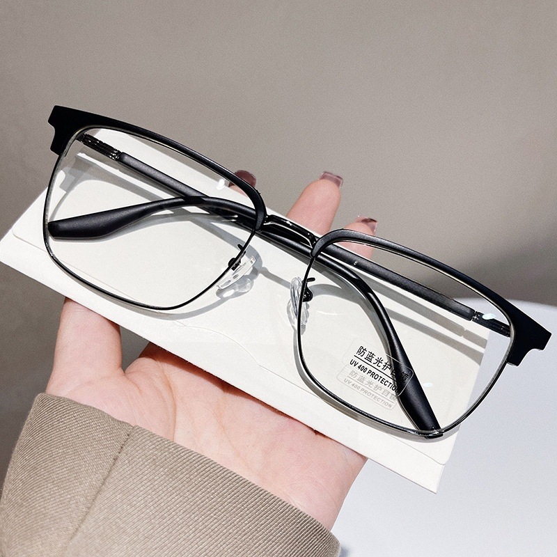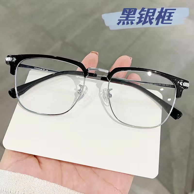 新品trメタルハイブリッド近視眼鏡フレームレトロ半枠角型ブルーレイ防止眼鏡メンズビジネス眼鏡フレーム