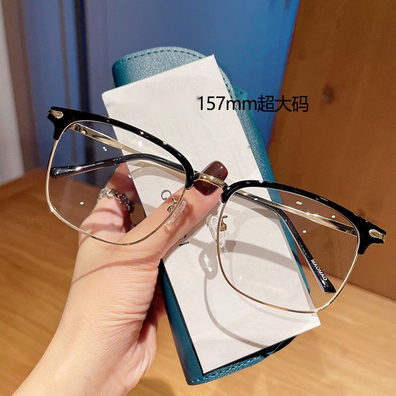 新サイズ15.8cm近視眼鏡フレーム男性大顔半枠平光鏡近視眼レンズ女性