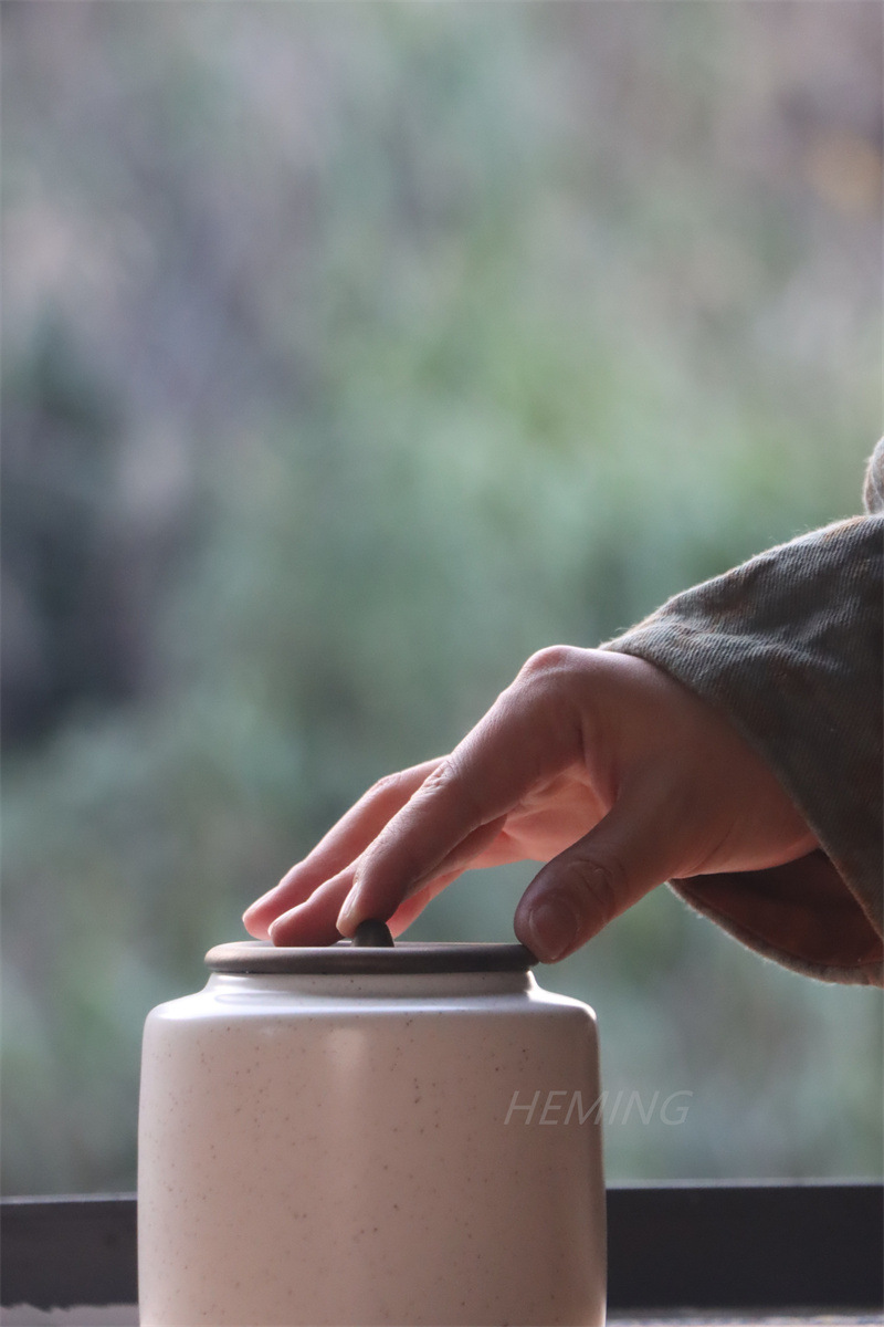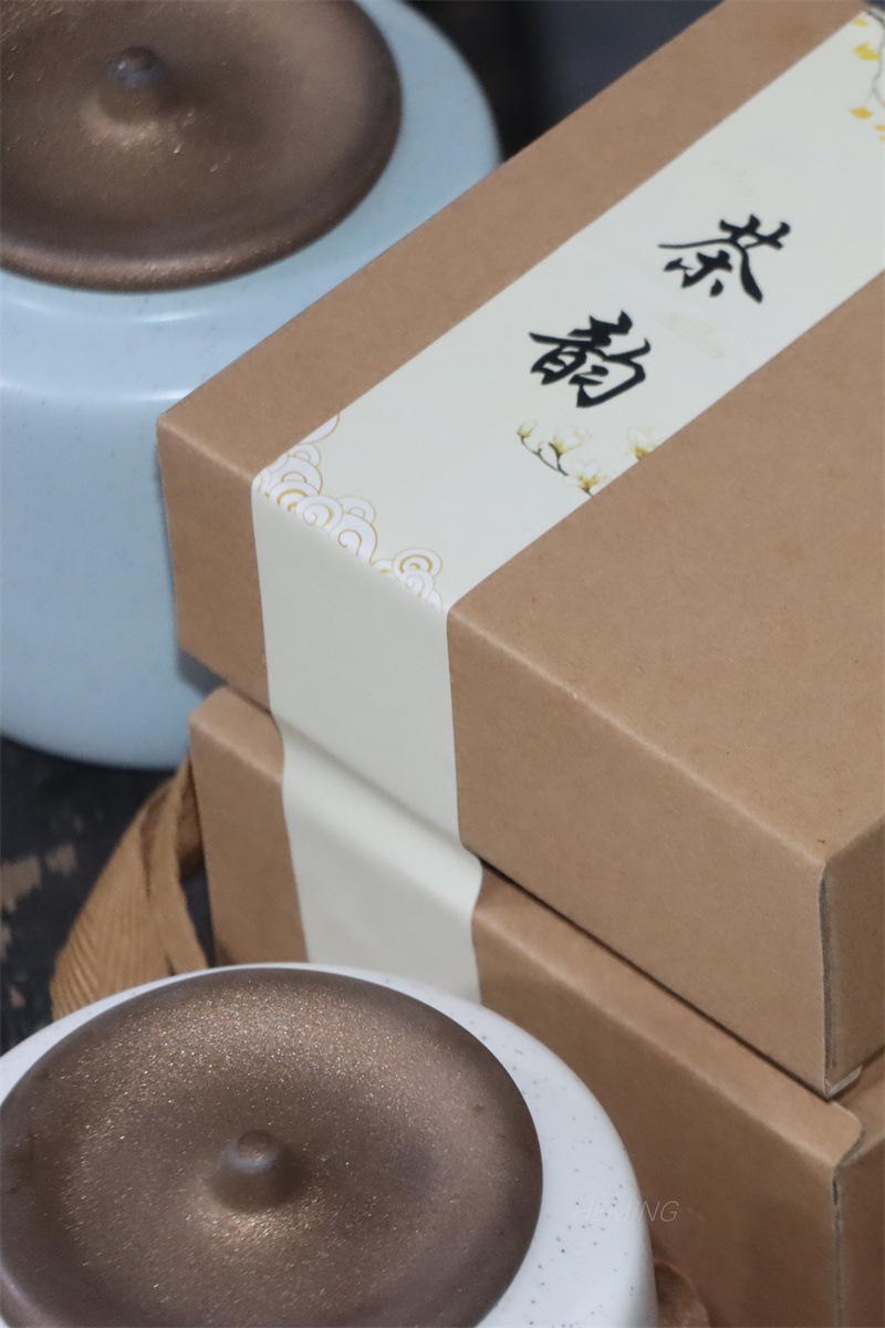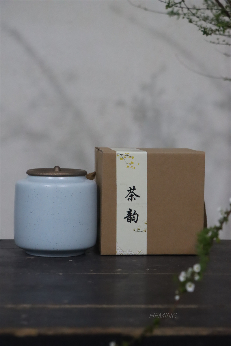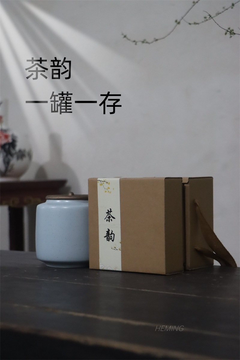 シンプルな茶葉缶陶磁器密封缶粗陶大トランペット家庭用貯蔵タンク防湿創意ギフトボックス包装