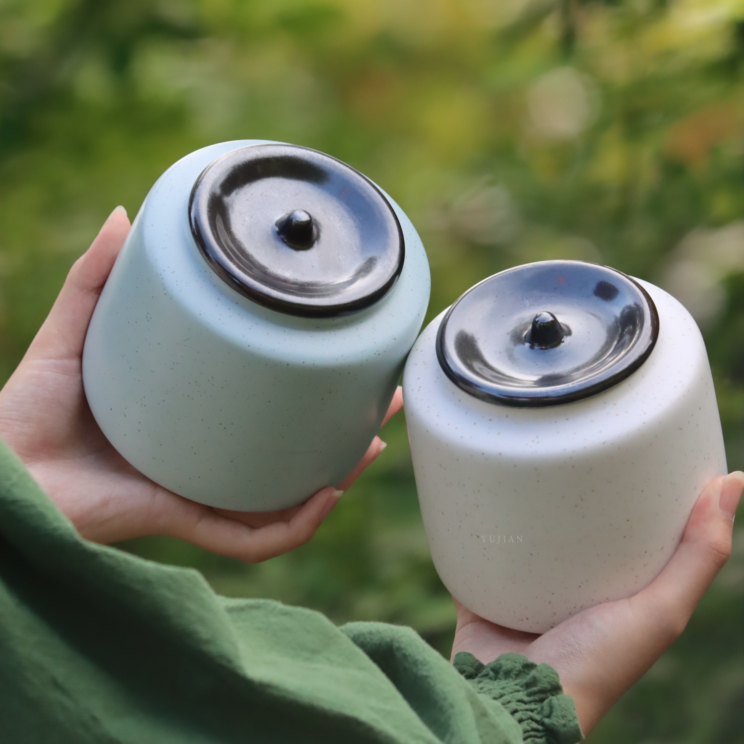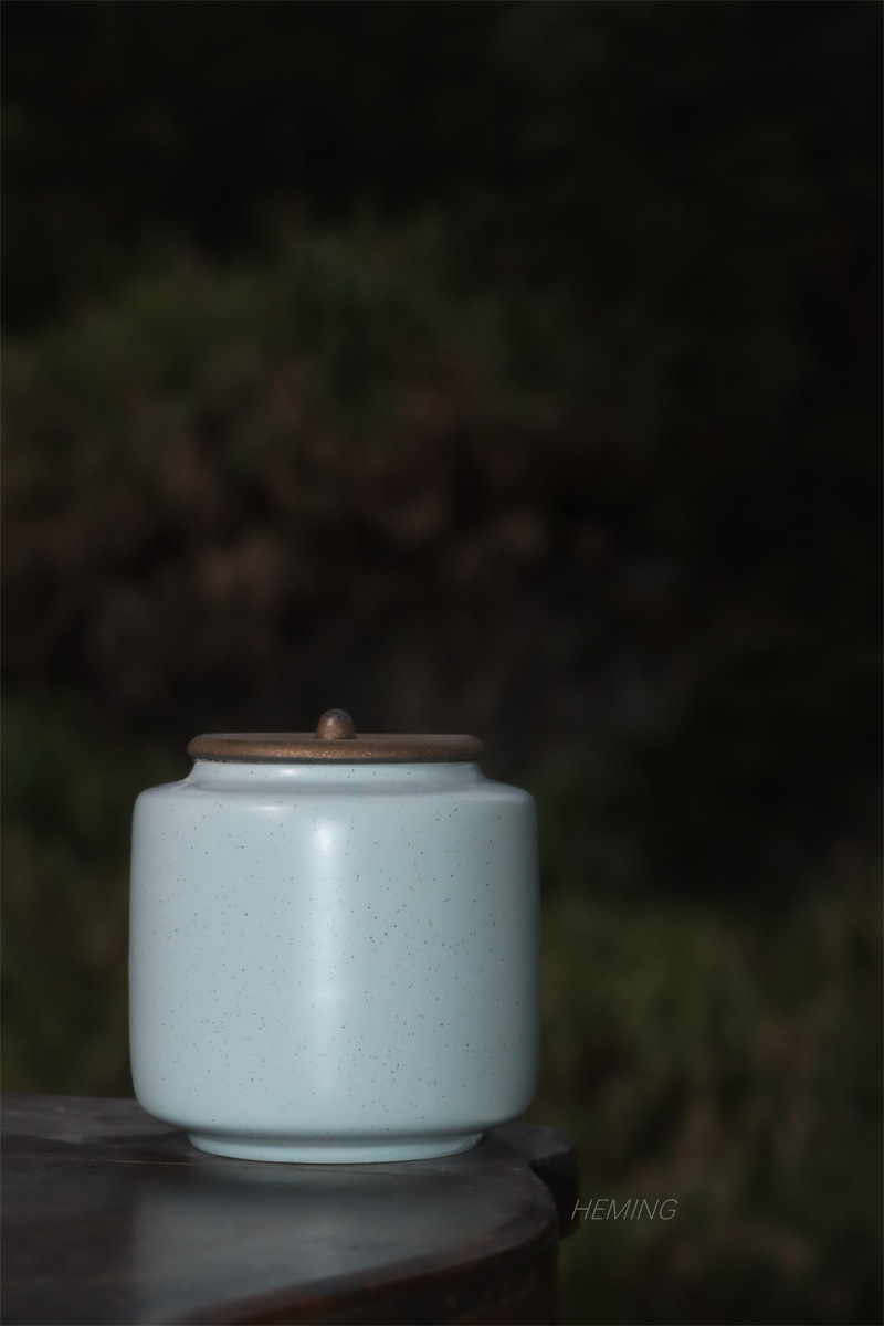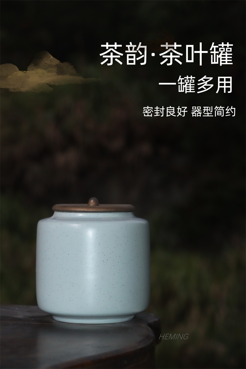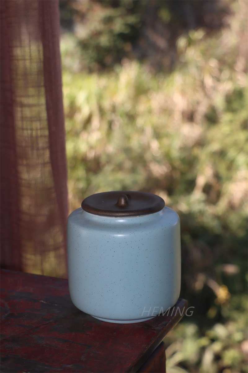 茶葉缶陶磁器香粉膏方密封缶青磁トランペット防湿貯蔵散茶缶茶缶携帯卸売り