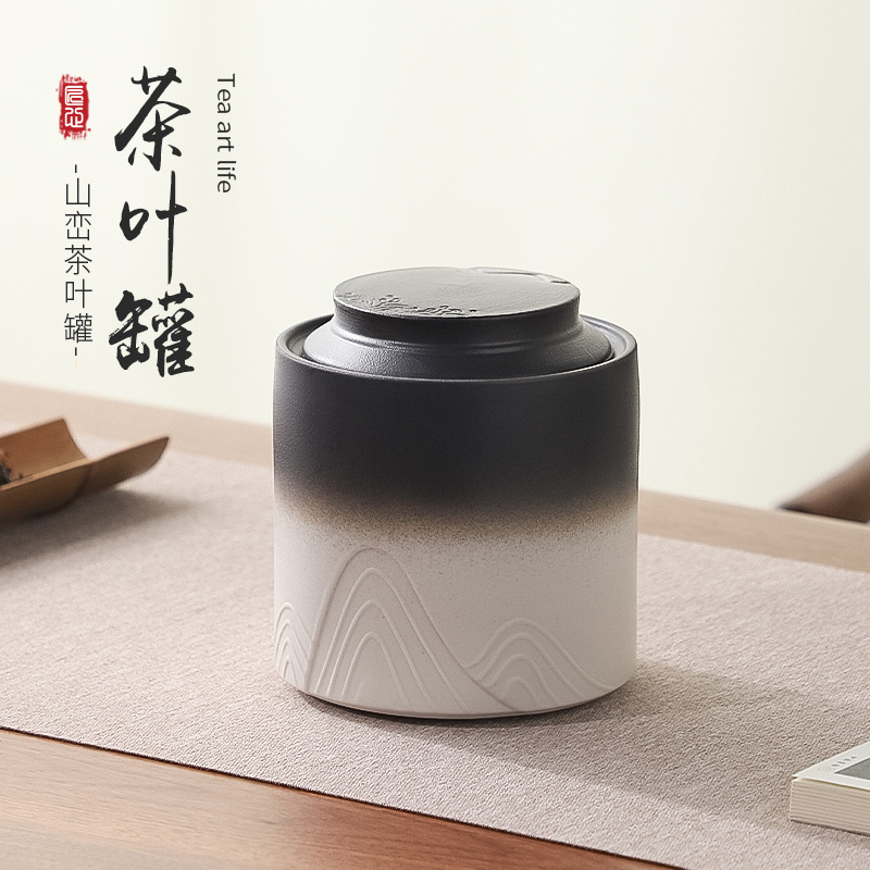 高档山峦陶瓷茶叶罐普洱茶罐密封罐家用茶桌摆件密封防潮茶仓