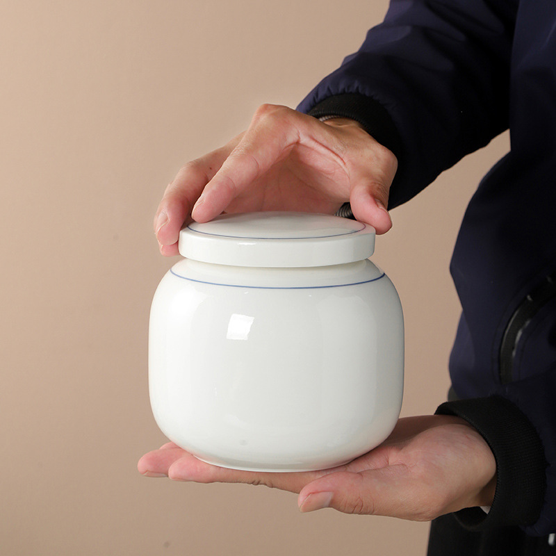 白磁の手作業の線の膏の方の缶の密封の缶の陶磁器の漢方医の膏滋の缶の粉の底の薬の粉の缶のお茶の貯蔵の缶