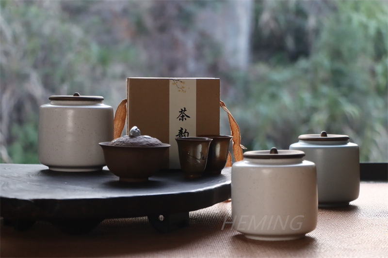 シンプルな茶葉缶陶磁器貯蔵缶日本式粗陶貯蔵茶缶復古密封茶倉高温焼空缶セット