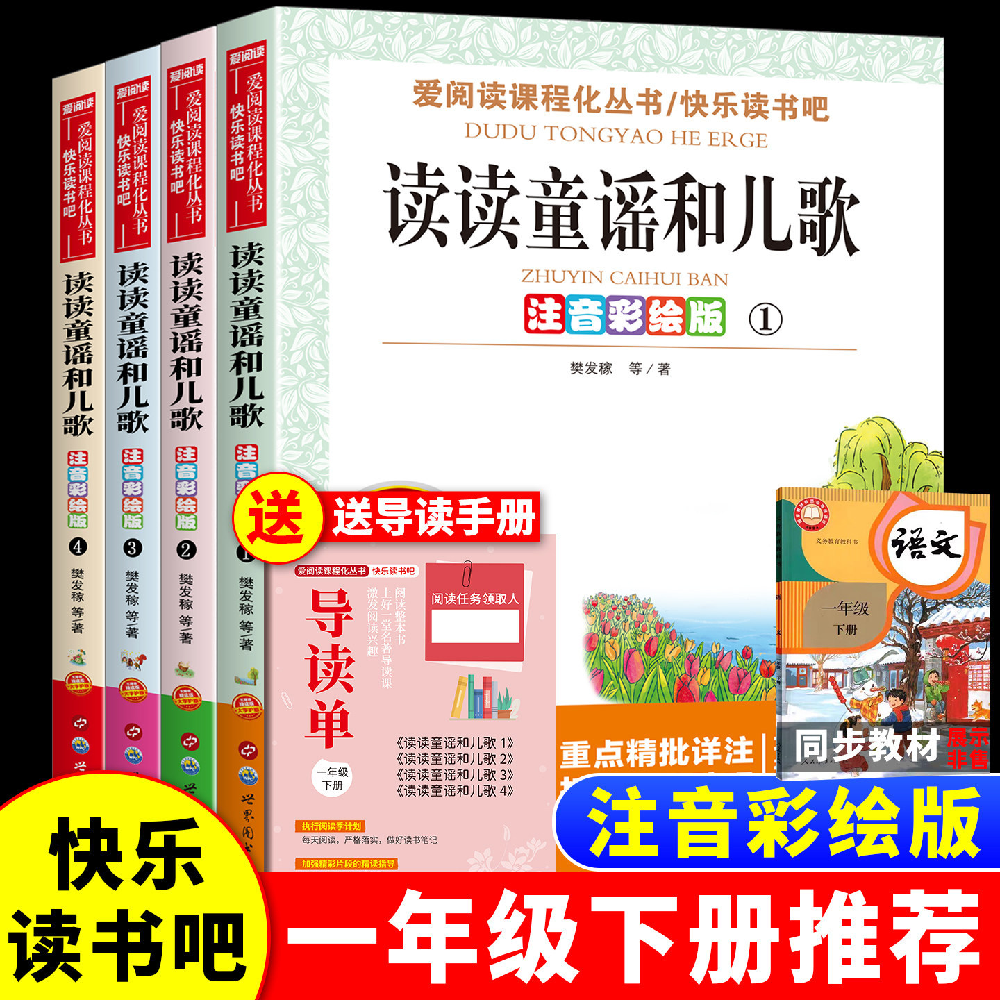 读读童谣和儿歌全4册注音彩绘版 一年级下册阅读课外书必读无障碍