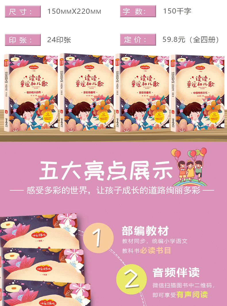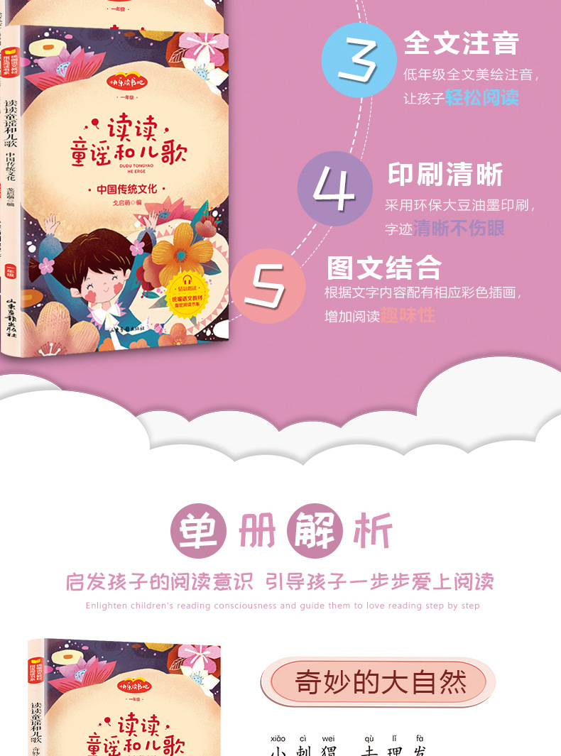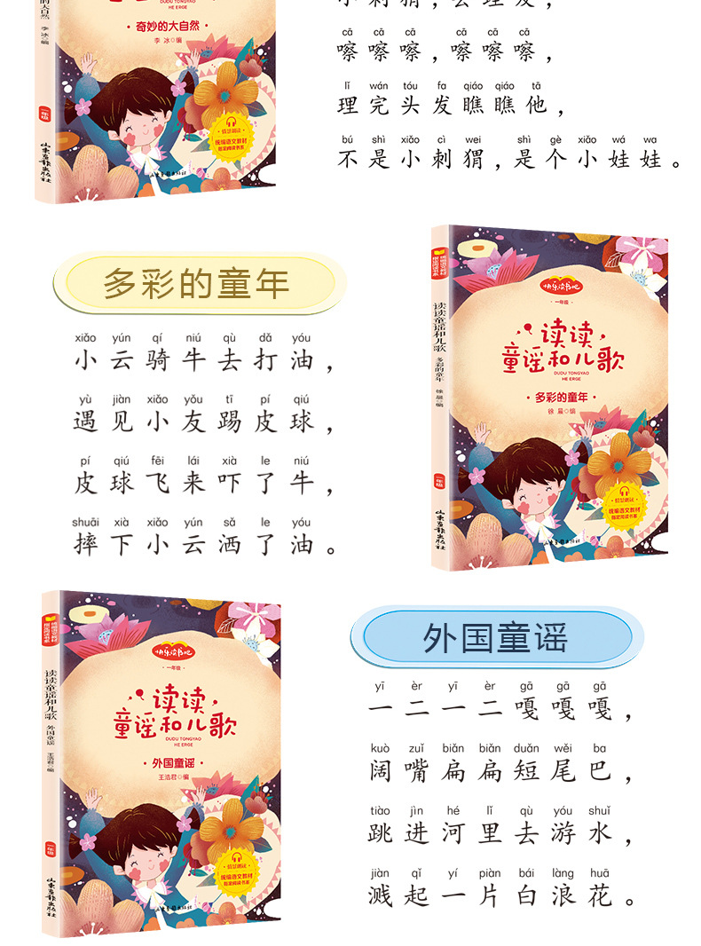 童謡と童謡の発音版の全4冊の奇妙さと自然の多彩な子供時代の外国童謡の中で読みます。