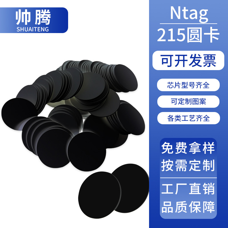Ntag215コインカードnfcホワイトカード215ブラックカード丸型カードnfcチップステッカー自動接続WIFI音楽再生