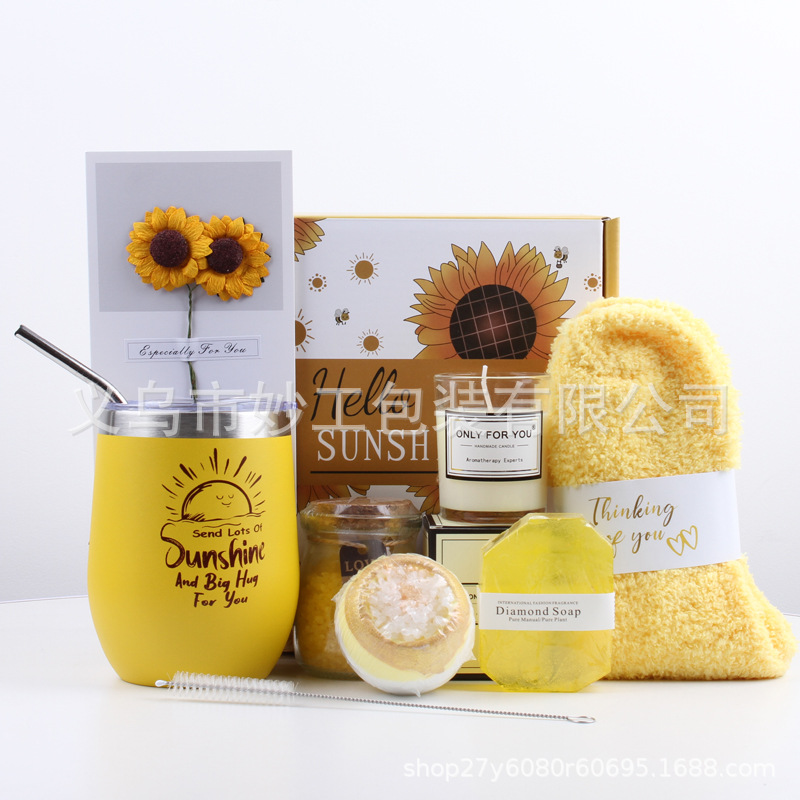 国境を越えたヒマワリのテーマギフトセット保温カップ入浴香薫靴下誕生日プレゼント母の日ギフトボックス