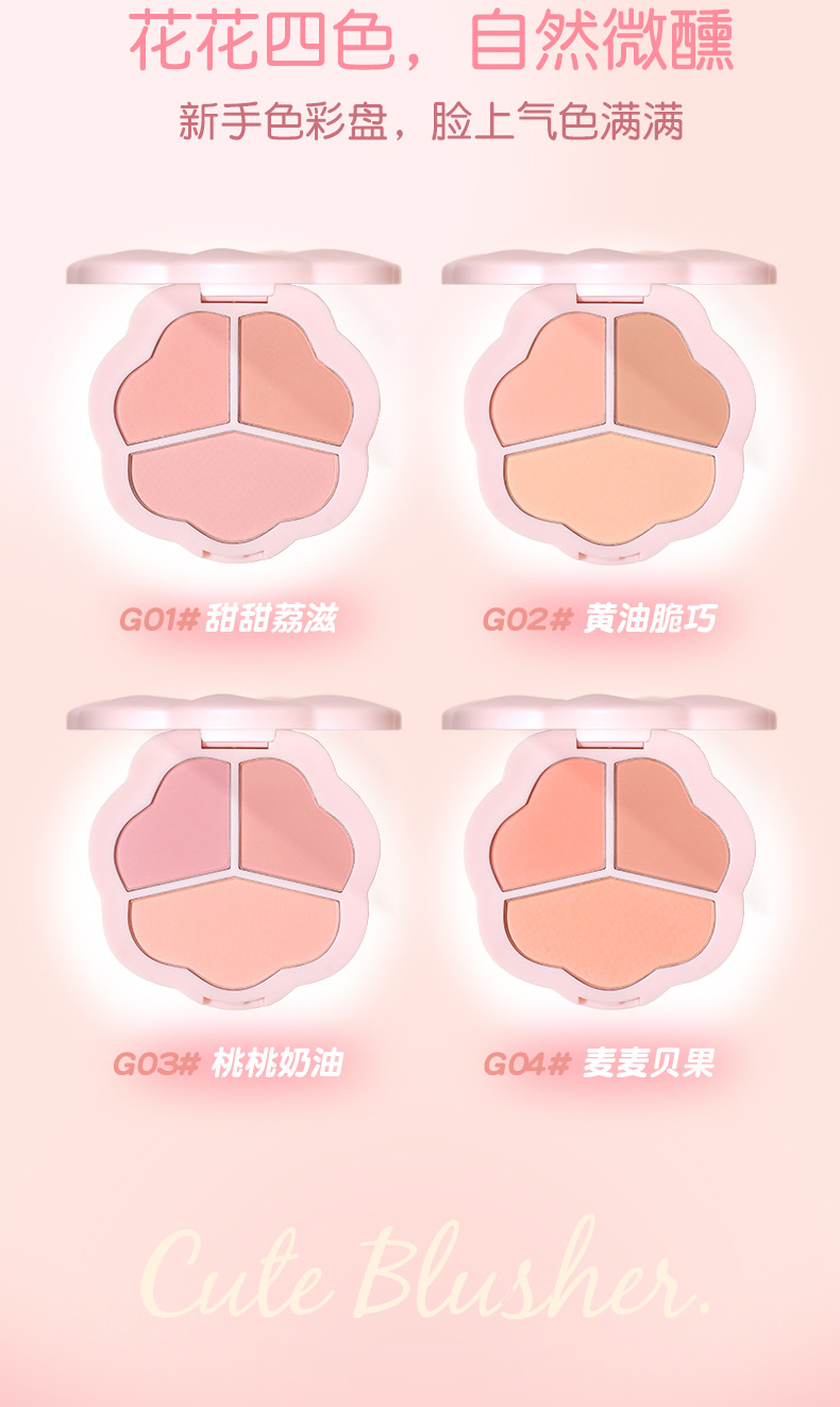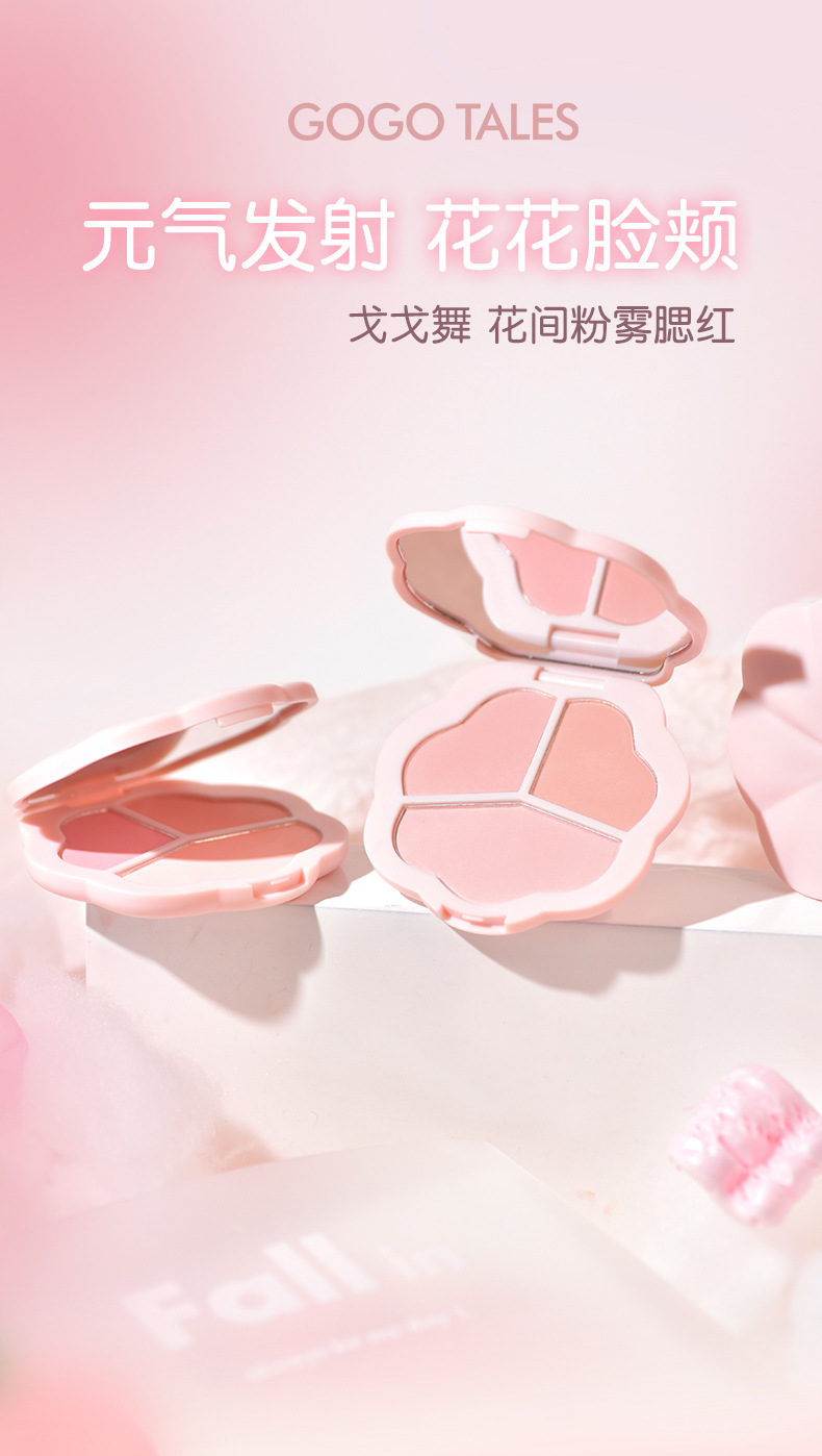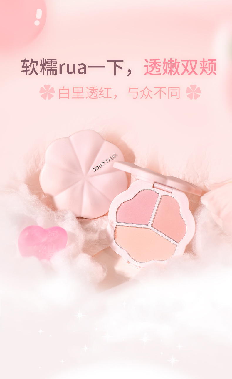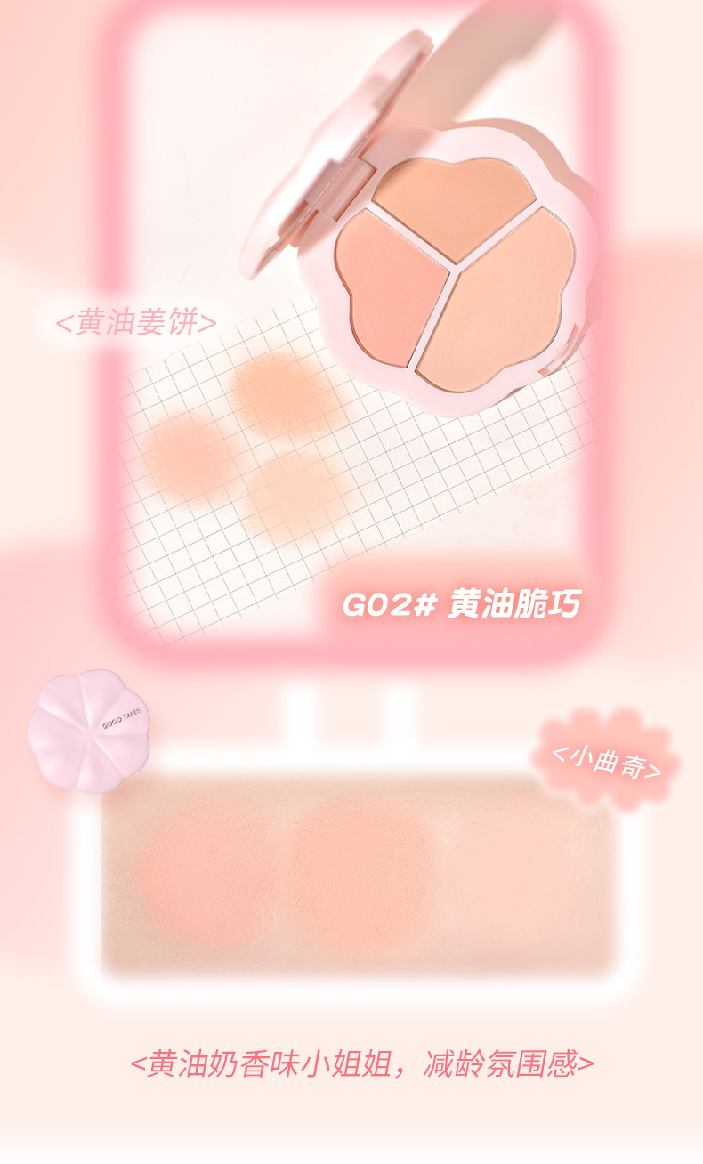 Gogotalesゴゴ舞花間粉霧三色頬紅盤粉柔らかい花びらのつや消し平価紅GT638