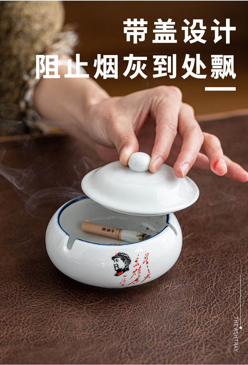 紫砂トランペット蓋付き灰皿中国式陶磁器防風灰シリンダーオフィス個性潮流ファッション灰皿置物