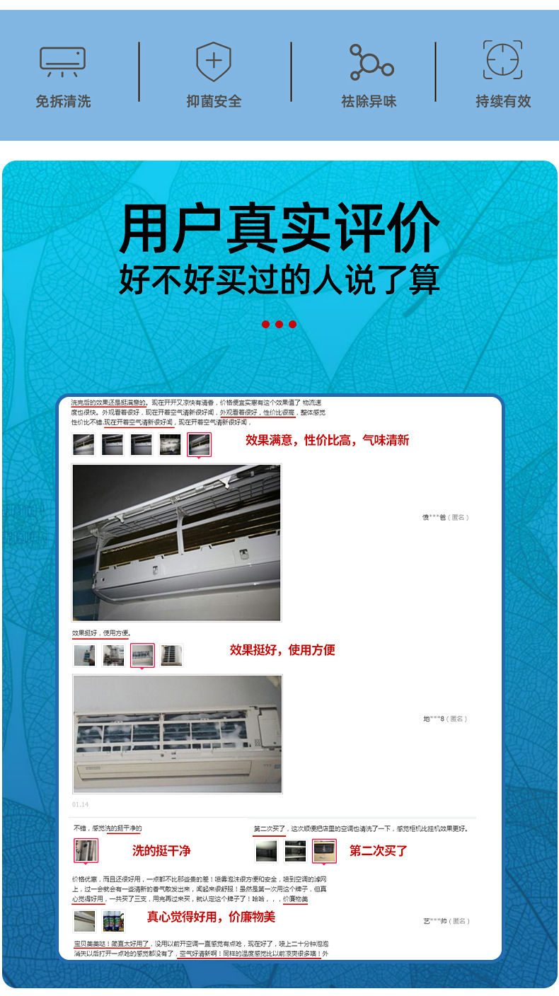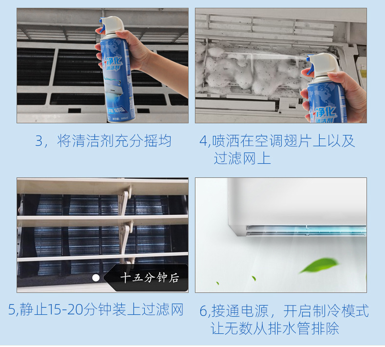 エアコン洗浄剤家庭用自動車洗浄ダスト壁掛けキャビネット発泡型洗浄剤取り外し不要水洗いメーカー卸売り