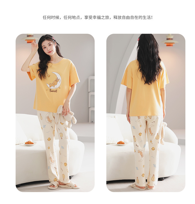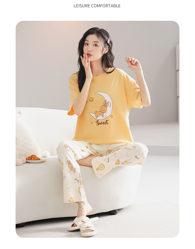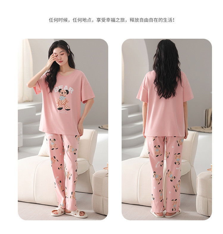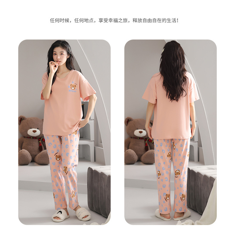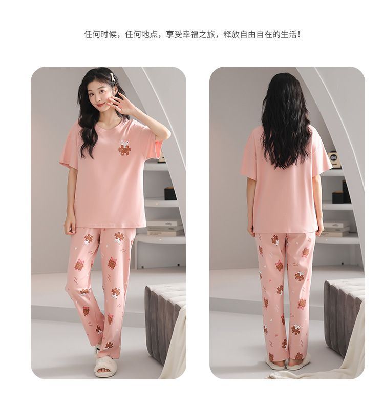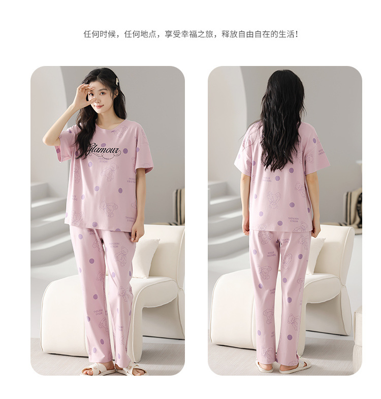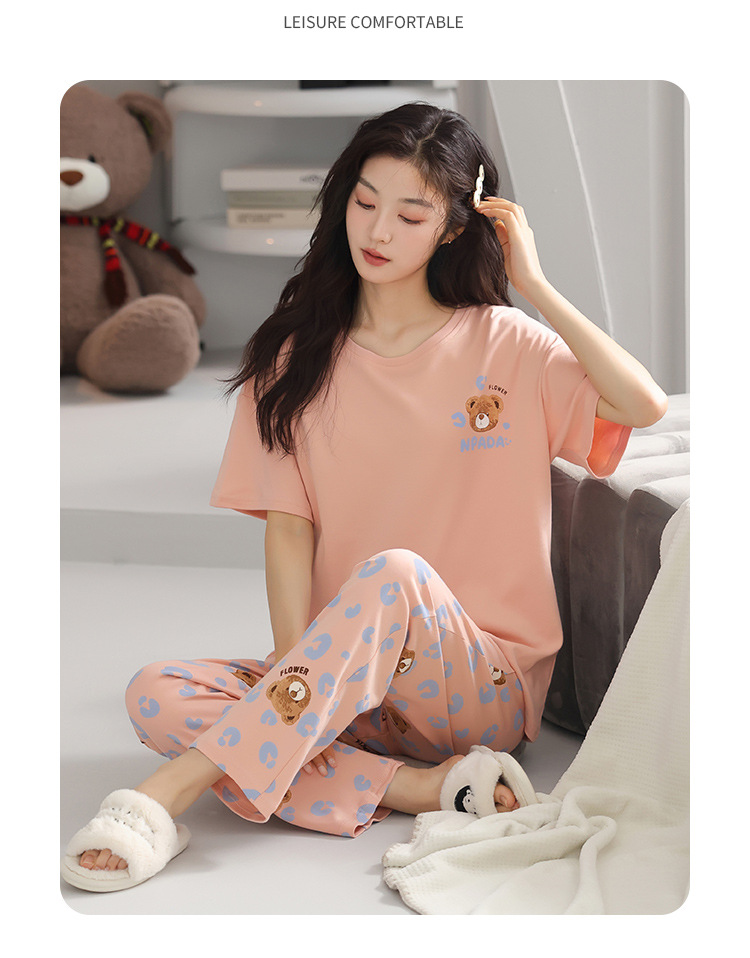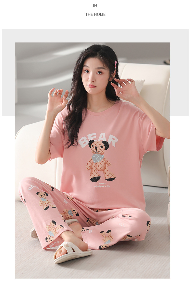 純綿のパジャマの女性の春夏の新型のアニメの少女は外に大きいサイズの丸首の綿の半袖のズボンの家庭服の夏を着ることができます。