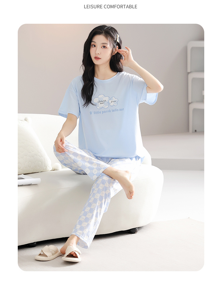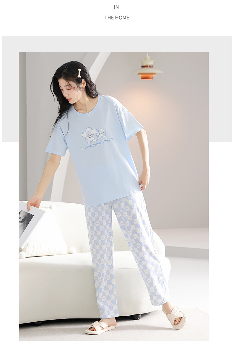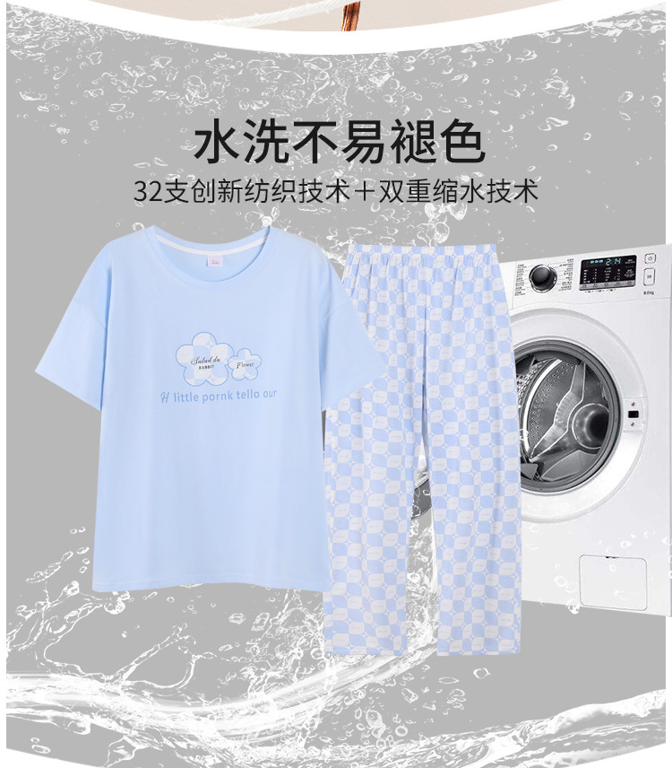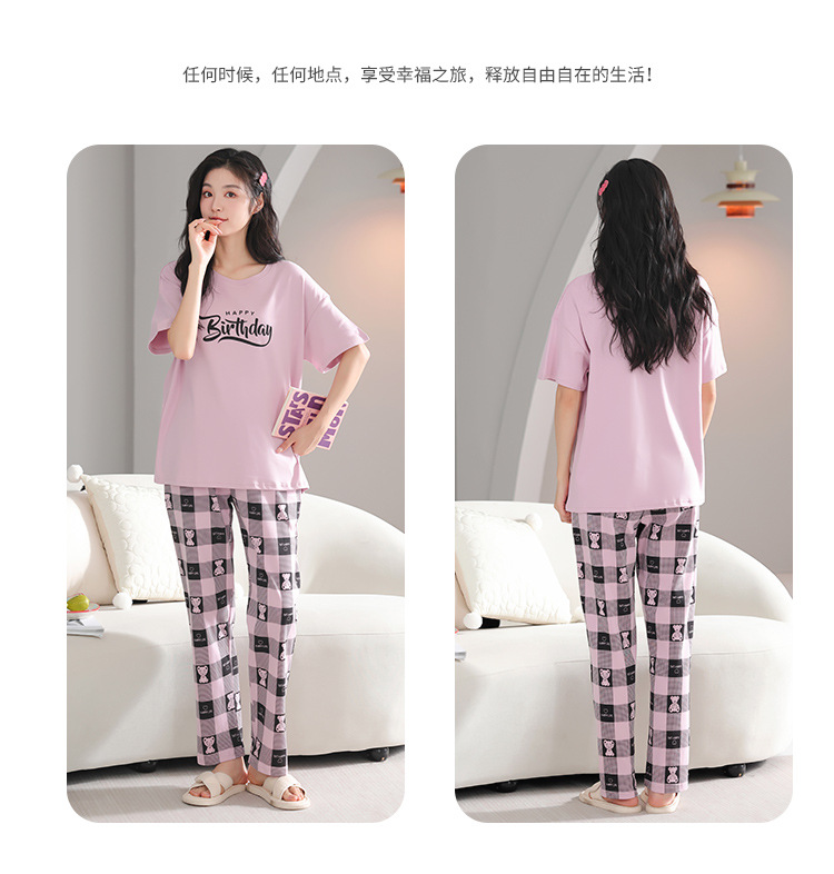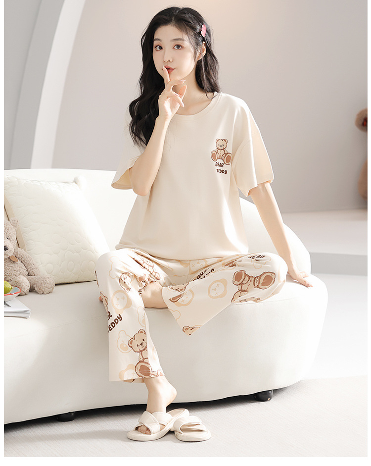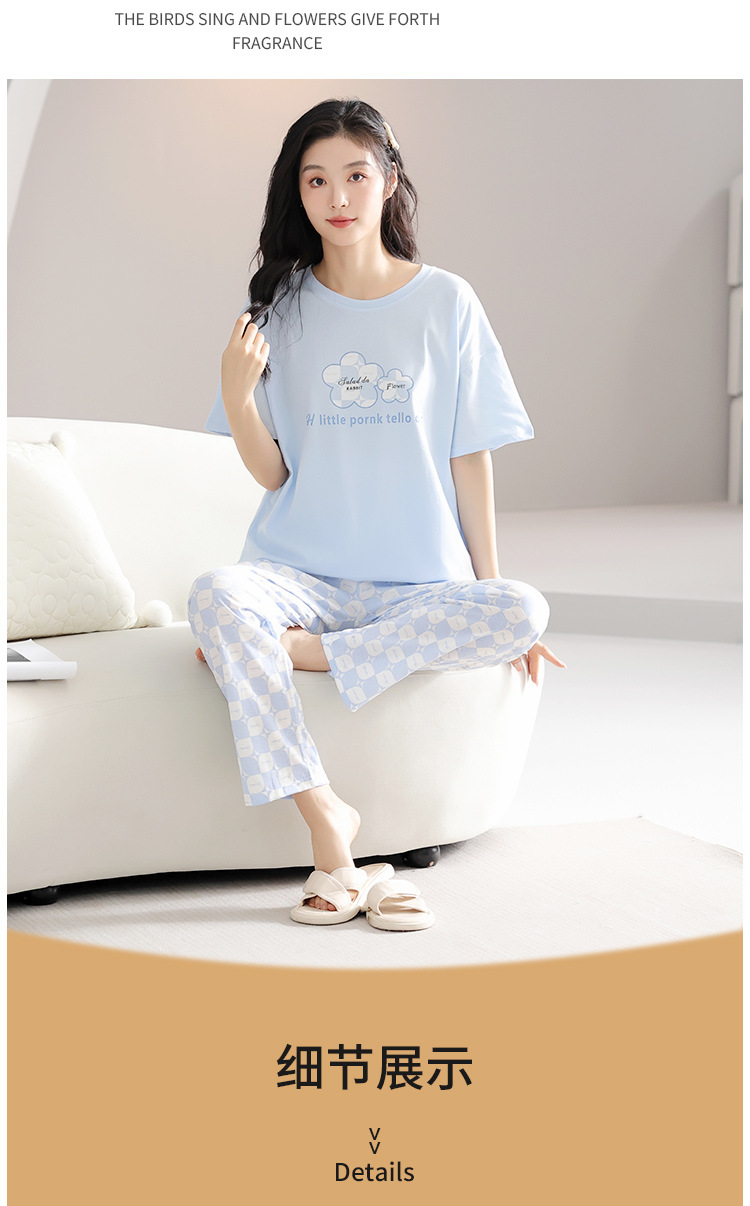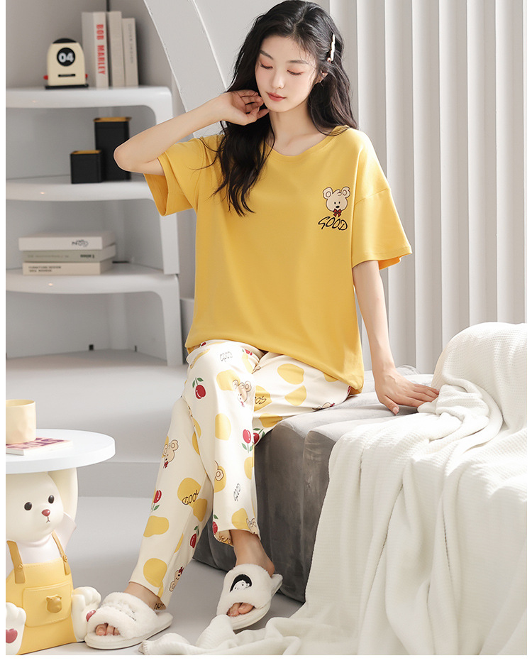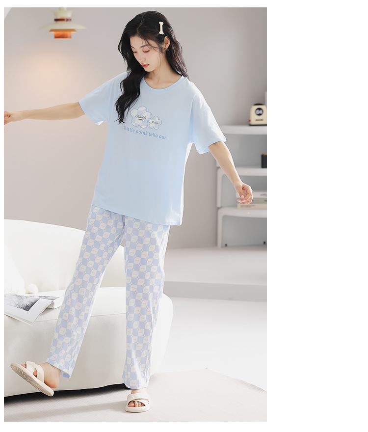 純綿のパジャマの女性の春夏の新型のアニメの少女は外に大きいサイズの丸首の綿の半袖のズボンの家庭服の夏を着ることができます。