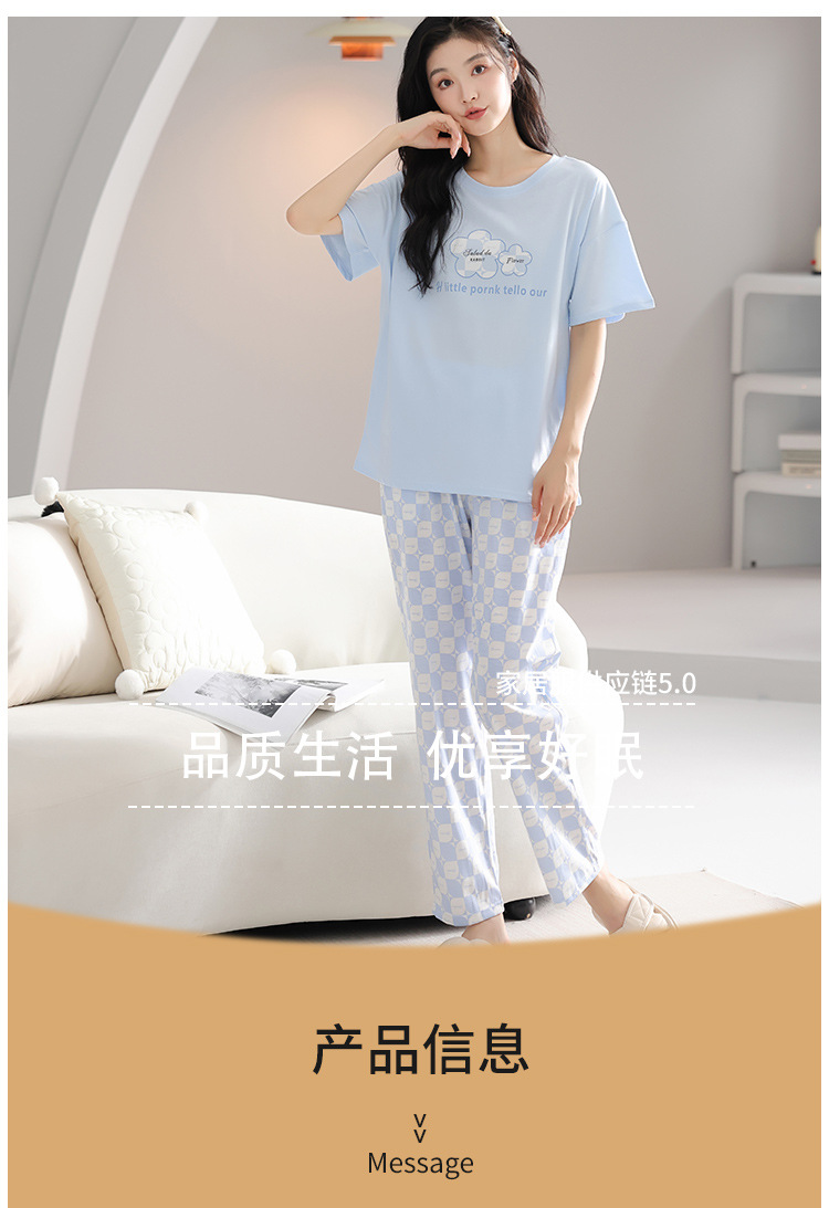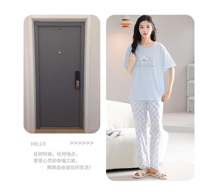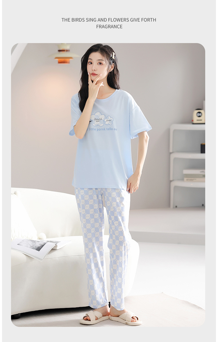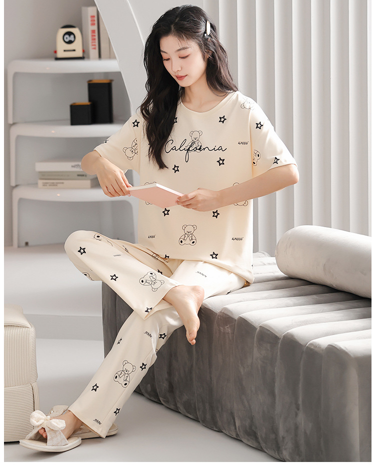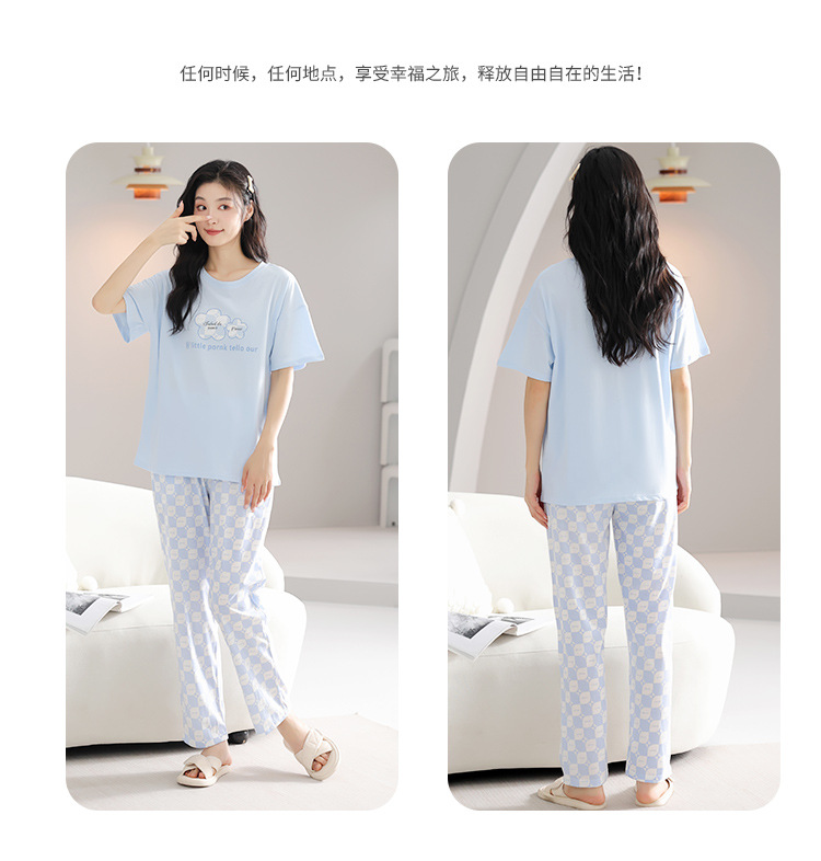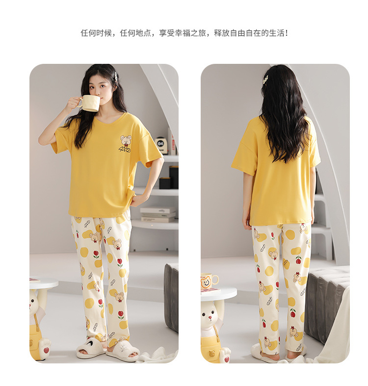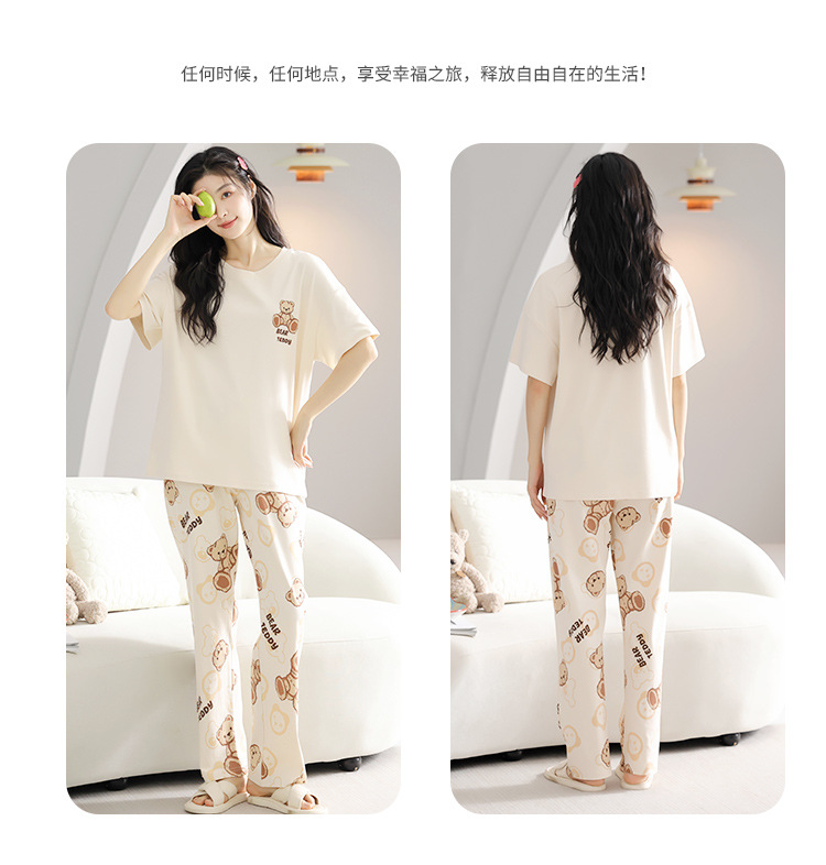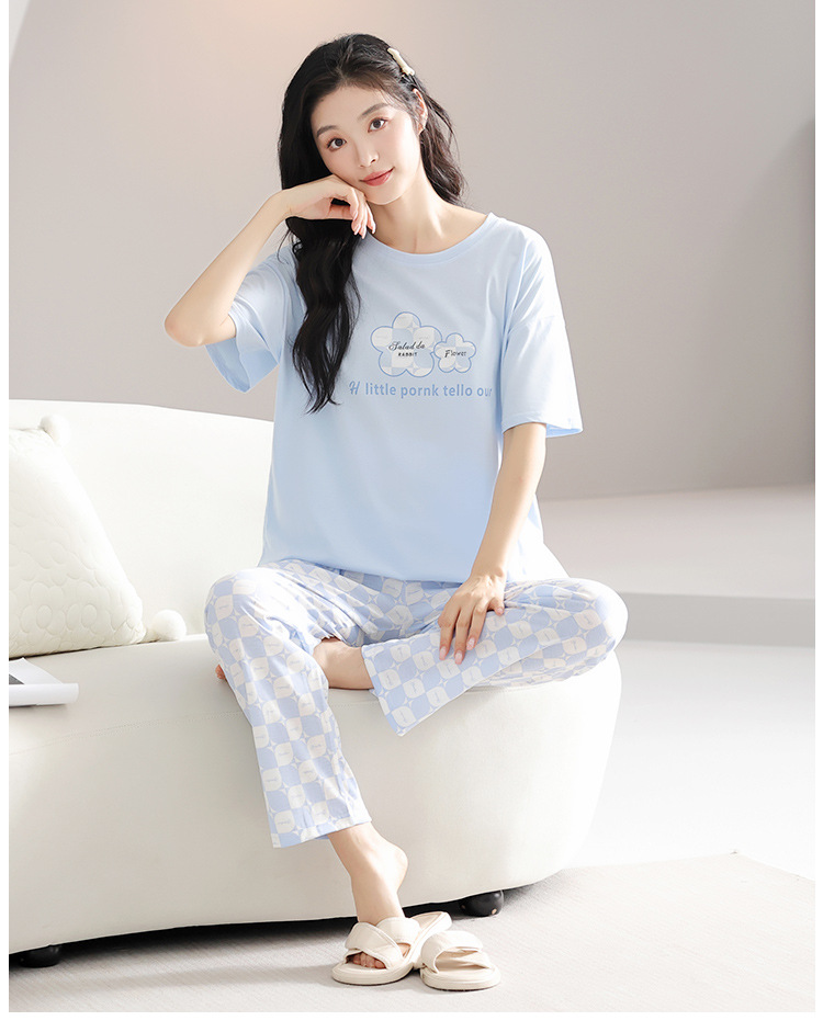 純綿のパジャマの女性の春夏の新型のアニメの少女は外に大きいサイズの丸首の綿の半袖のズボンの家庭服の夏を着ることができます。