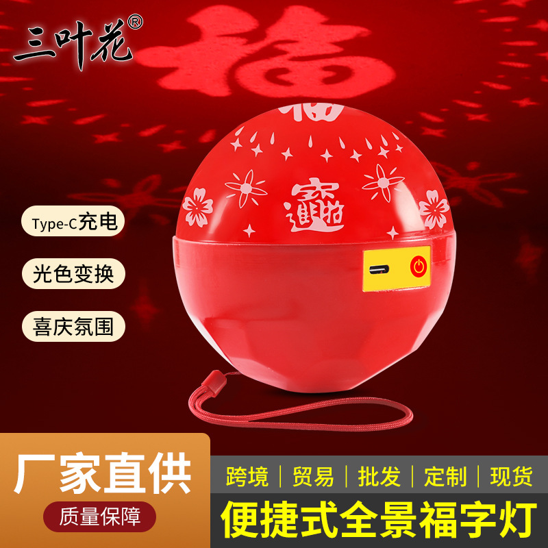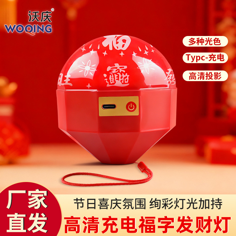 新型充電式「福」字ランタン ワイヤレス投影カラーランタン 春節ランタン 新年雰囲気ランプ