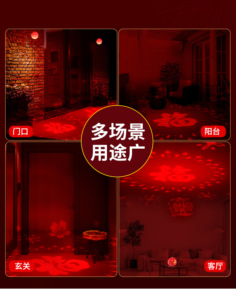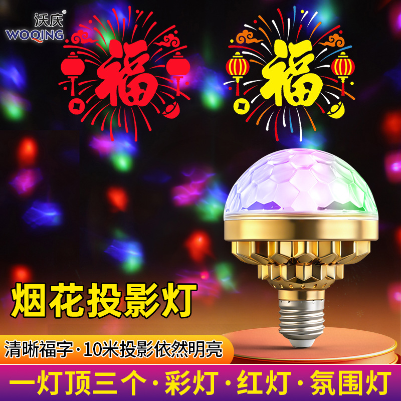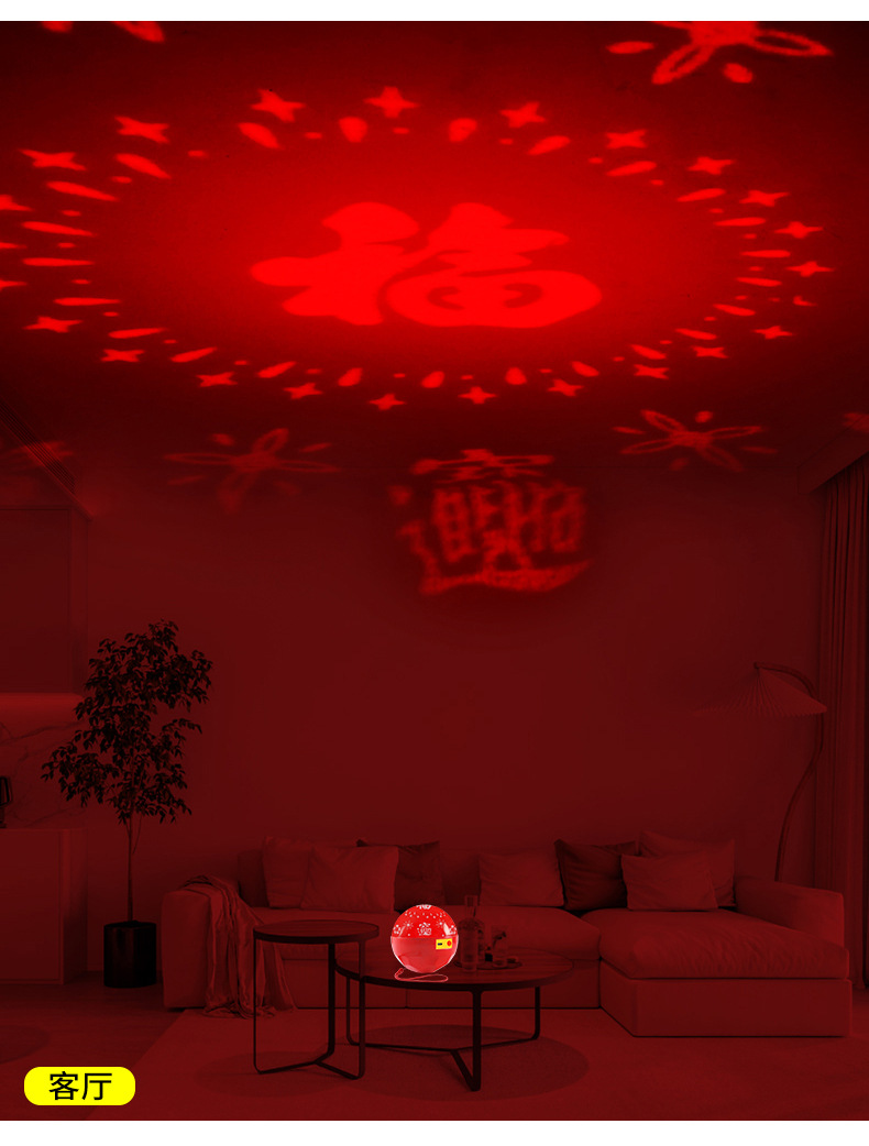 新款烟花福字投影灯氛围灯过年装饰灯造景喜庆七彩灯图案自动变色