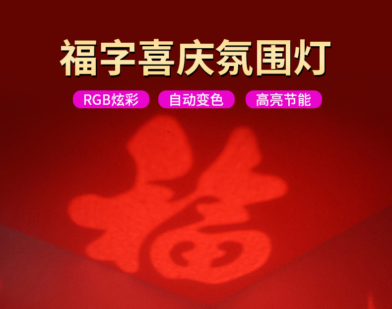 旧正月の現物福字灯七彩変色福字電球新年投影灯福気金持ち灯旧正月福灯