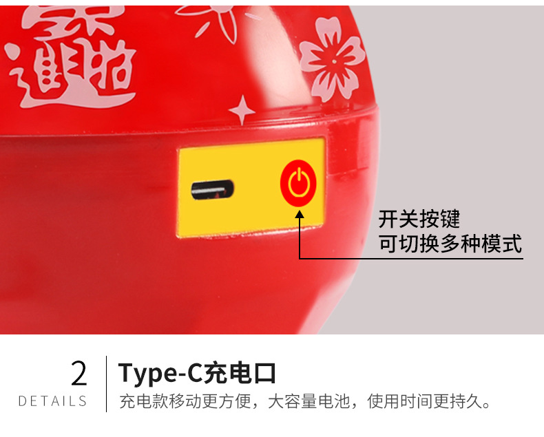 充电款福字灯充电式新年装饰灯可充电充大红灯笼不插电充电式灯泡