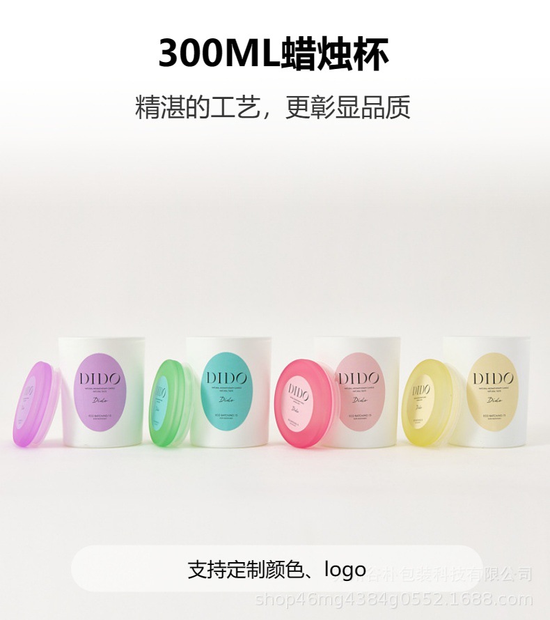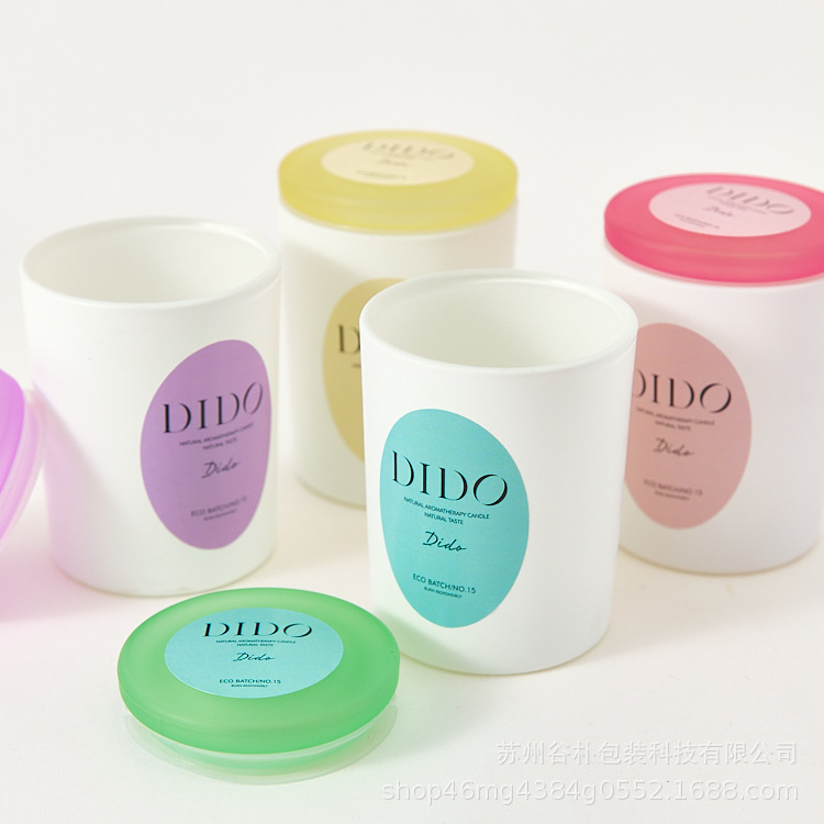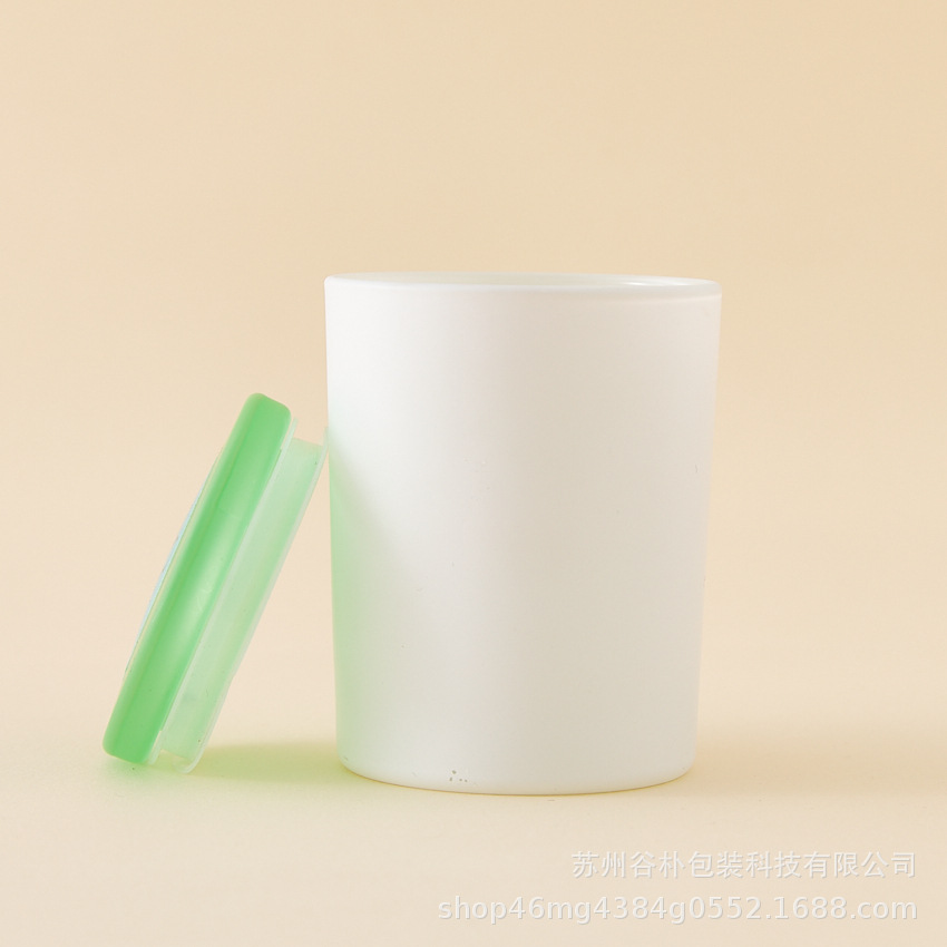 谷朴デザイナーの300mlのつや消しの白いろうそくの杯の香薫の燭台の空のコップは色のガラスの蓋があります。