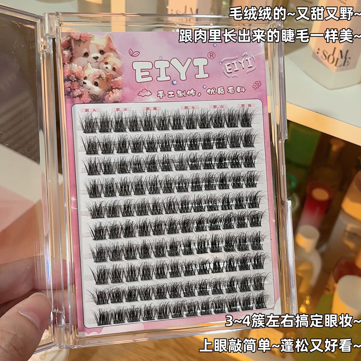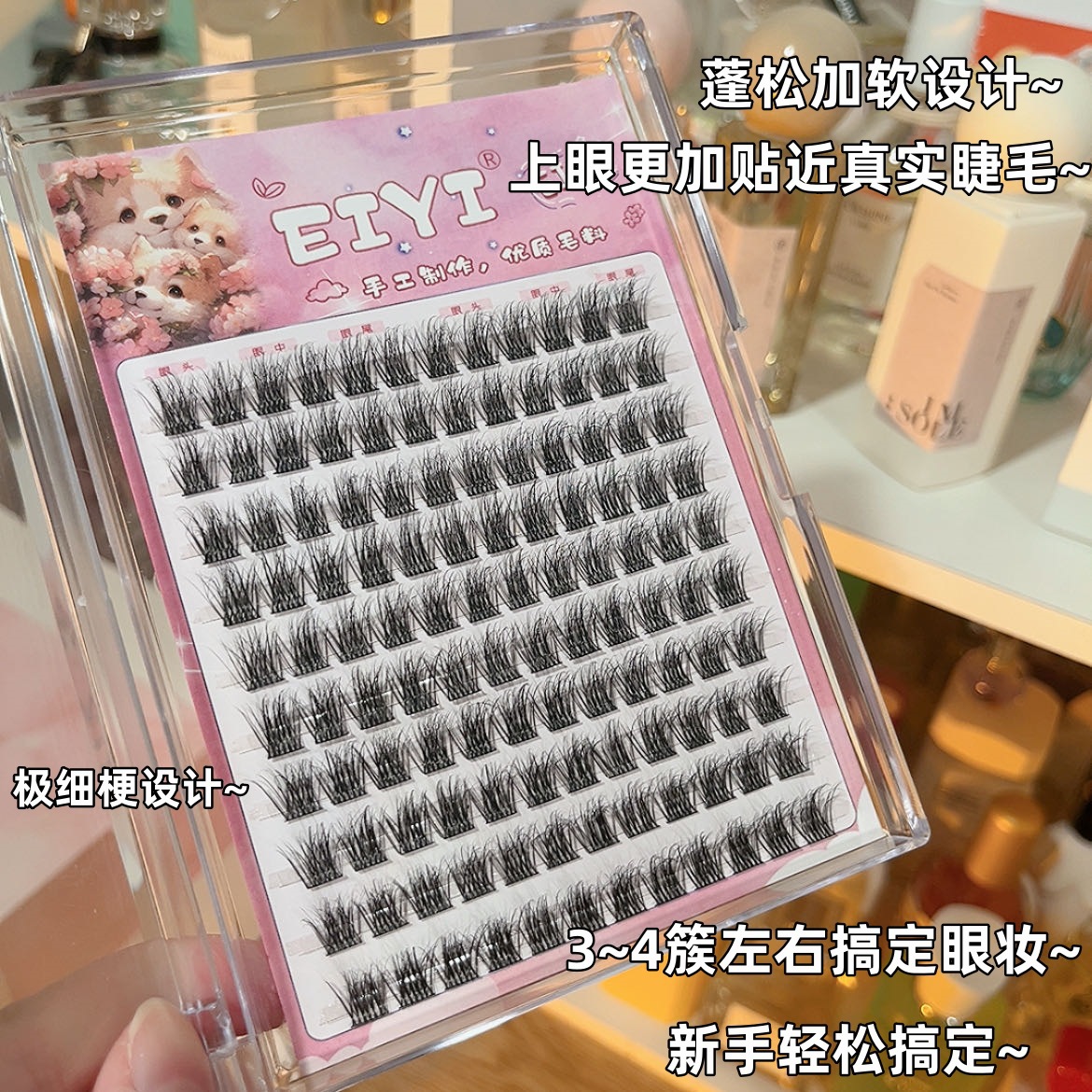 5D水貂绒三部曲免胶假睫毛单簇分段式硬梗日常胶水款婴儿弯假睫毛