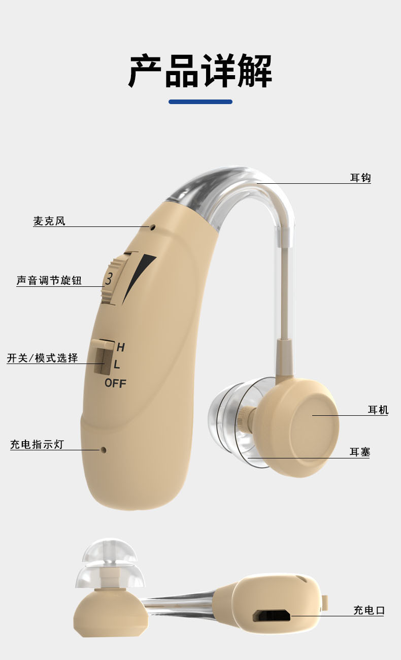 耳かけ型難聴耳かけ型音声アンプ充電式耳掛け型補聴器高齢者向け特別な越境輸出