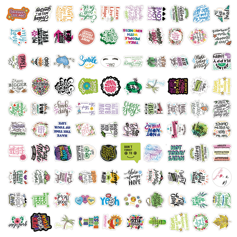 子供たちにインスピレーションを与える漢文落書きステッカー、インスピレーションを与える引用、クリエイティブな装飾ノートブック、防水ステッカー 100 枚