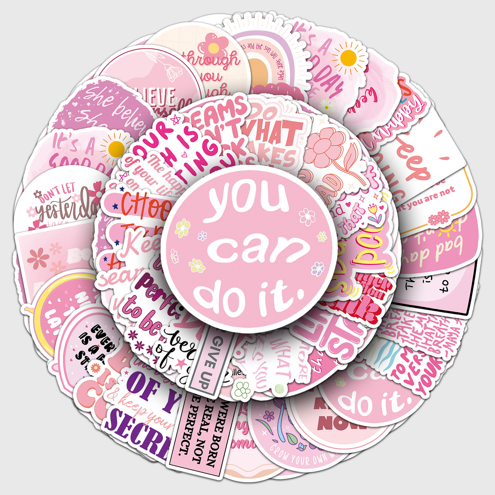 50枚のピンクの励ましの志の英語の落書きの貼り紙の個性の越境の漫画のセンテンスはスーツケースの携帯電話の貼り紙を飾ります。