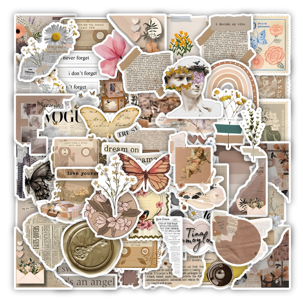 53枚の新型交際手紙pet透明シール復古手紙往来DIY手帳装飾防水ステッカー