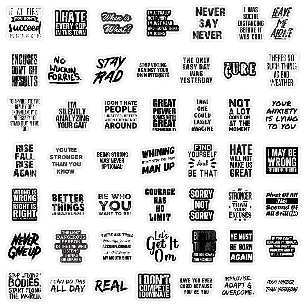50张激励语录美学贴纸正能量文字个性涂鸦装饰手机壳笔记本防水贴