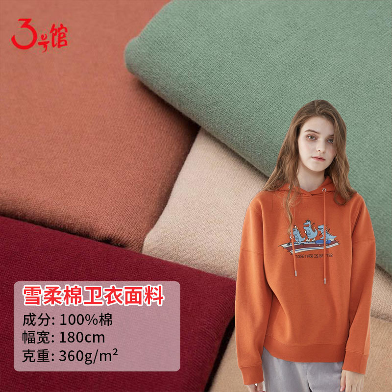 厚手の純綿スウェット生地360g、綿100%スウェット、スノーベルベット、魚鱗状の毛圈布、衣料品、スウェットパンツ、ニット生地