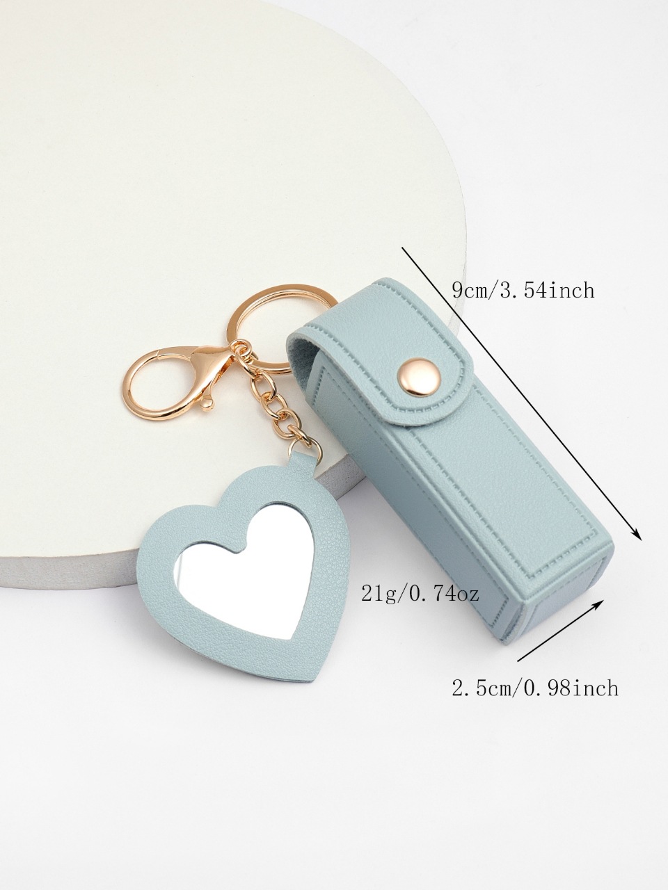 跨境爆款便携式口红包爱心镜子唇膏皮革挂件迷你口红包钥匙扣挂饰