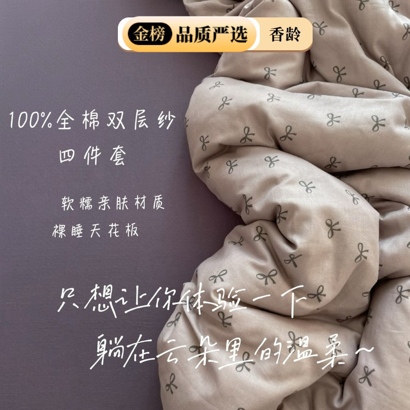 香龄优品全棉100支提花四件套轻奢高级感纯棉床单三件套床笠被套