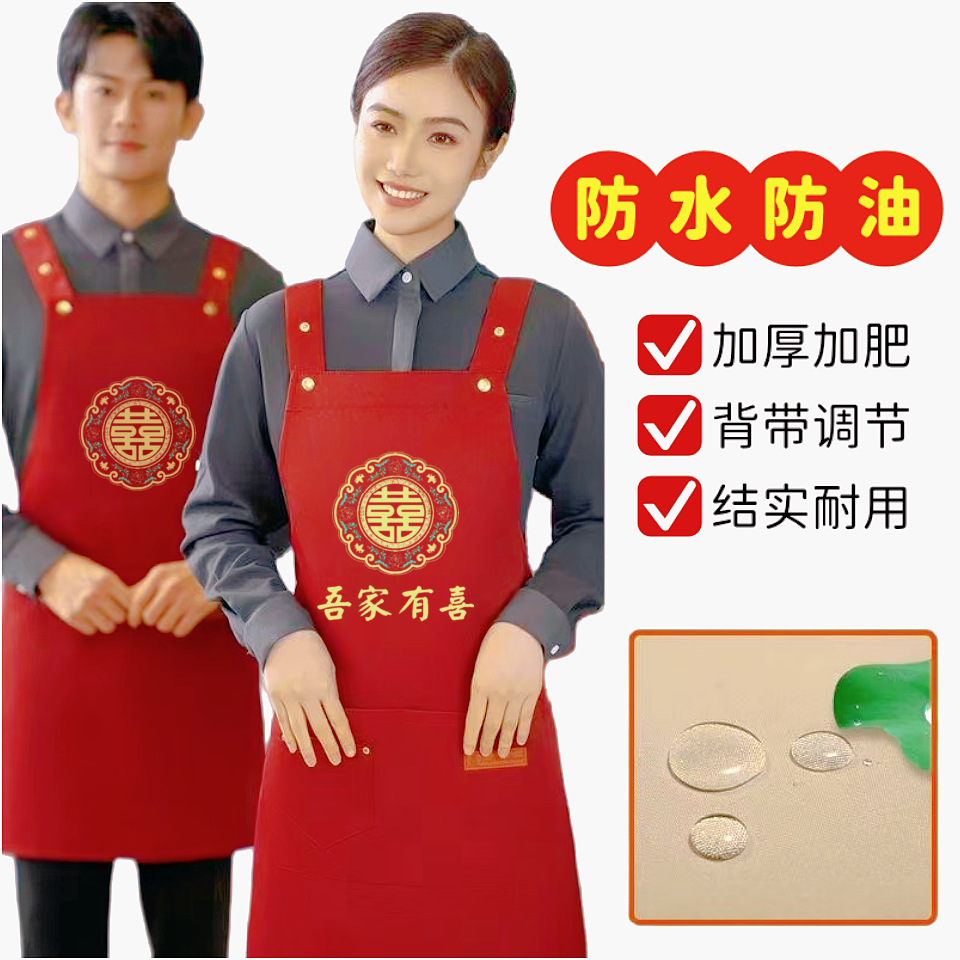 防水エプロン 結婚式専用 結婚祝い 升学祝い 新築祝い 百歳祝い 宴会用 赤色 キッチンエプロン 「囍」の文字入り