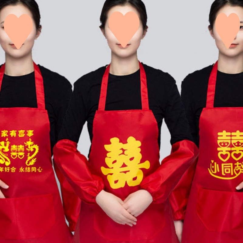 家有喜事围裙结婚围裙喜庆红色袖套生日寿宴婚庆满月礼品乔迁围裙