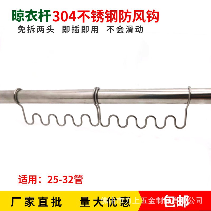 家庭用防風クリップ波型フック丸管物干し棒固定ボタン衣類間隔304ステンレス製取り外しなし