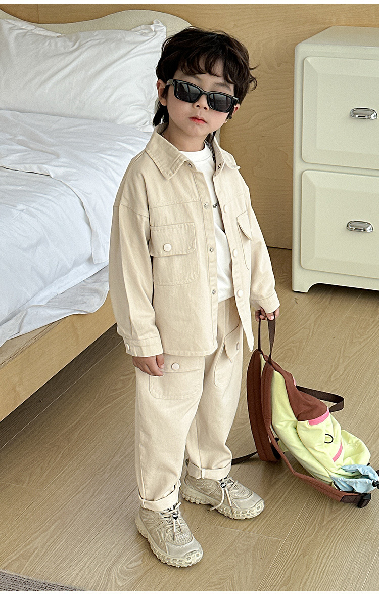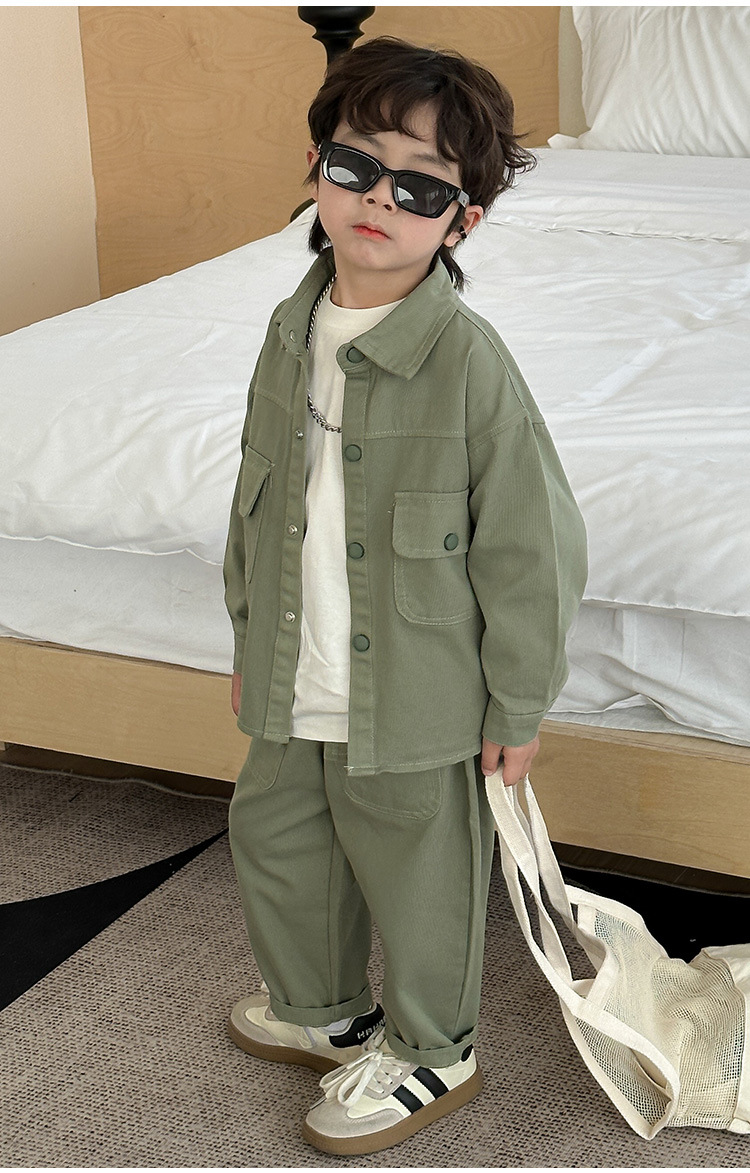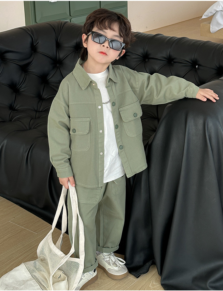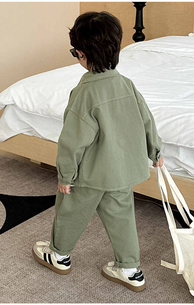 男の子のコーデュロイセット春と秋の子供の格好いい純色カジュアル2点セット