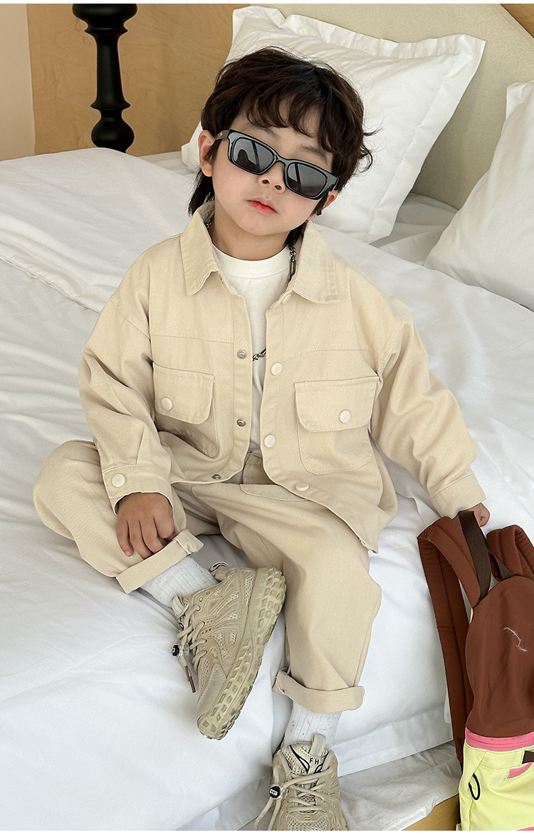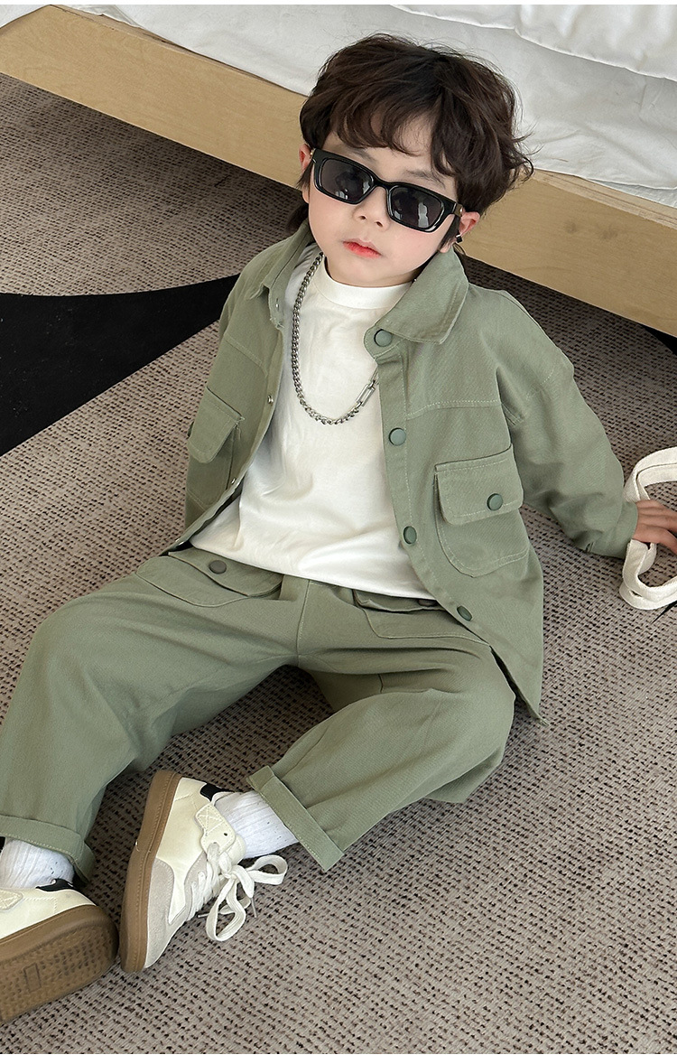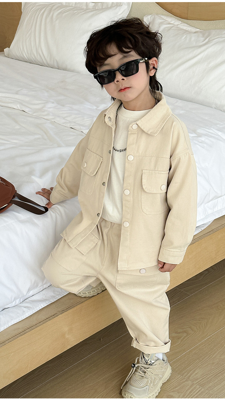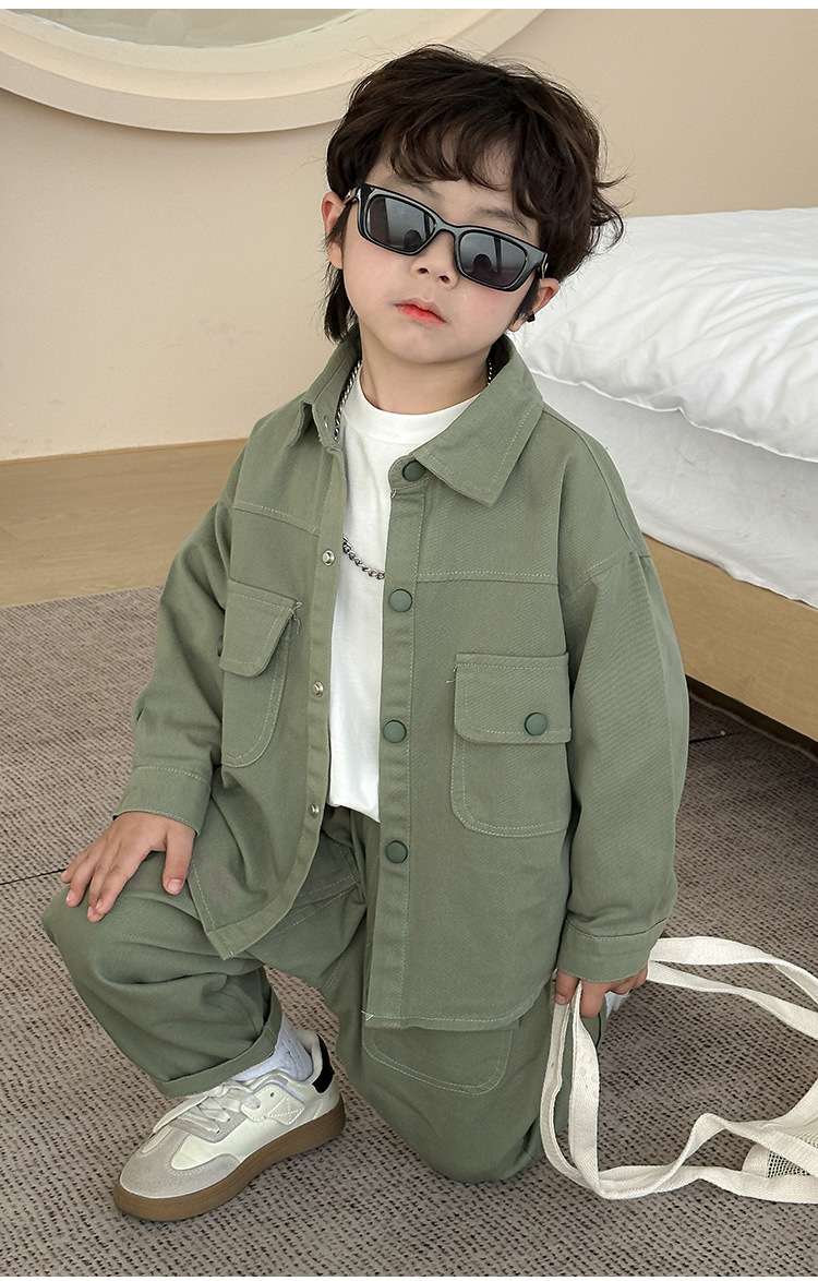 男の子のコーデュロイセット春と秋の子供の格好いい純色カジュアル2点セット