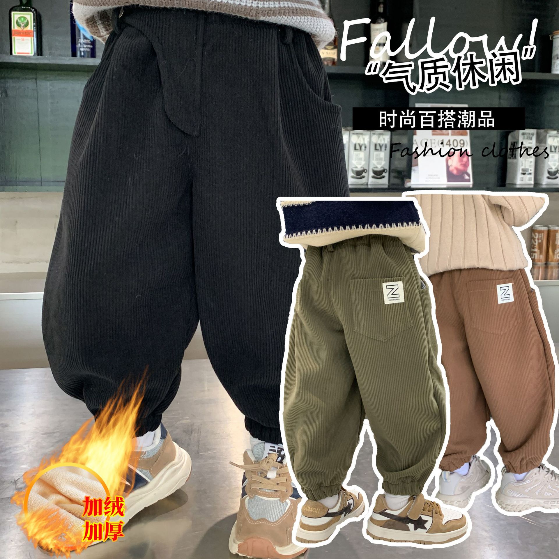 男の子用パンツ 90-140サイズ 韓国風 秋冬新作 子供用裏起毛綿パンツ 男児用パンツ 幼児・小学生向け