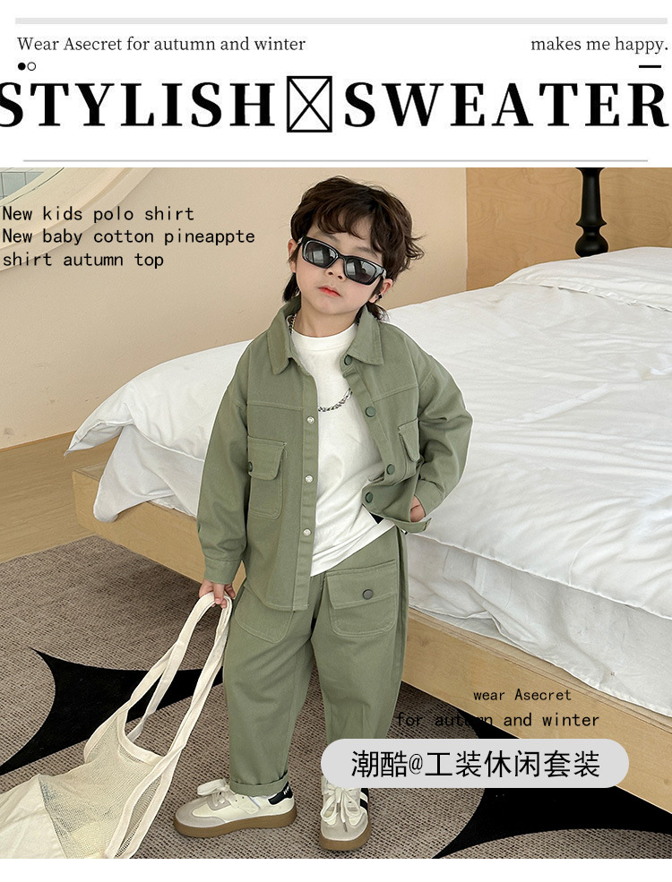 男児秋装セット2025新型男児潮クールコーデュロイコートカジュアル男児2点セット子供服潮