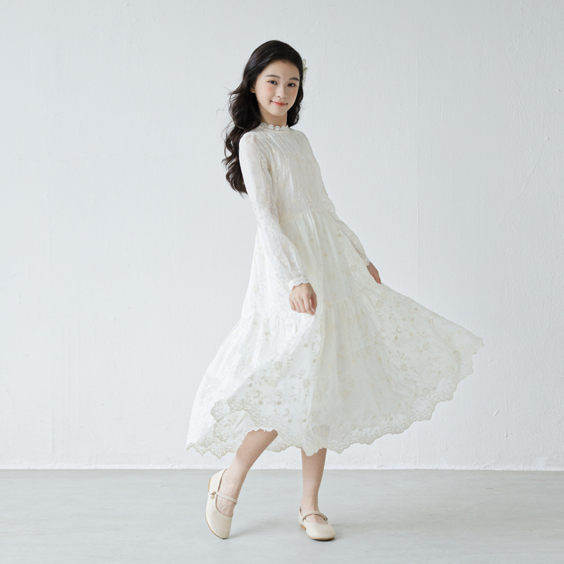 高级感蕾丝裙子法式连衣裙春秋季长袖初中学生少女大童仙女裙长裙