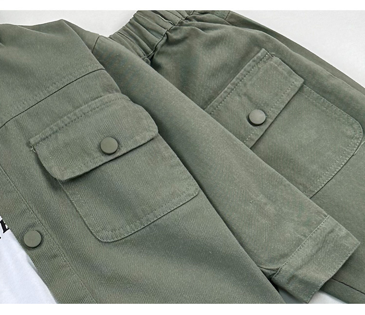 子供用フード付きジャケットスーツメンズ春秋子供用ワークジャケットレターベビー春ツーピーススーツレディーススタイル