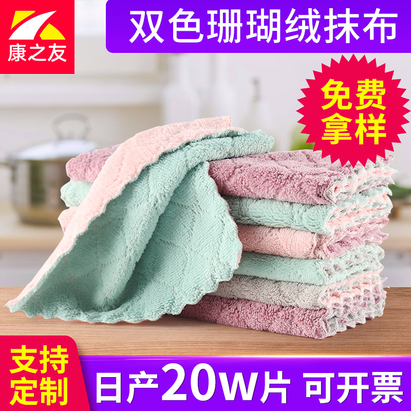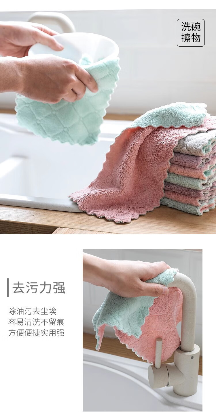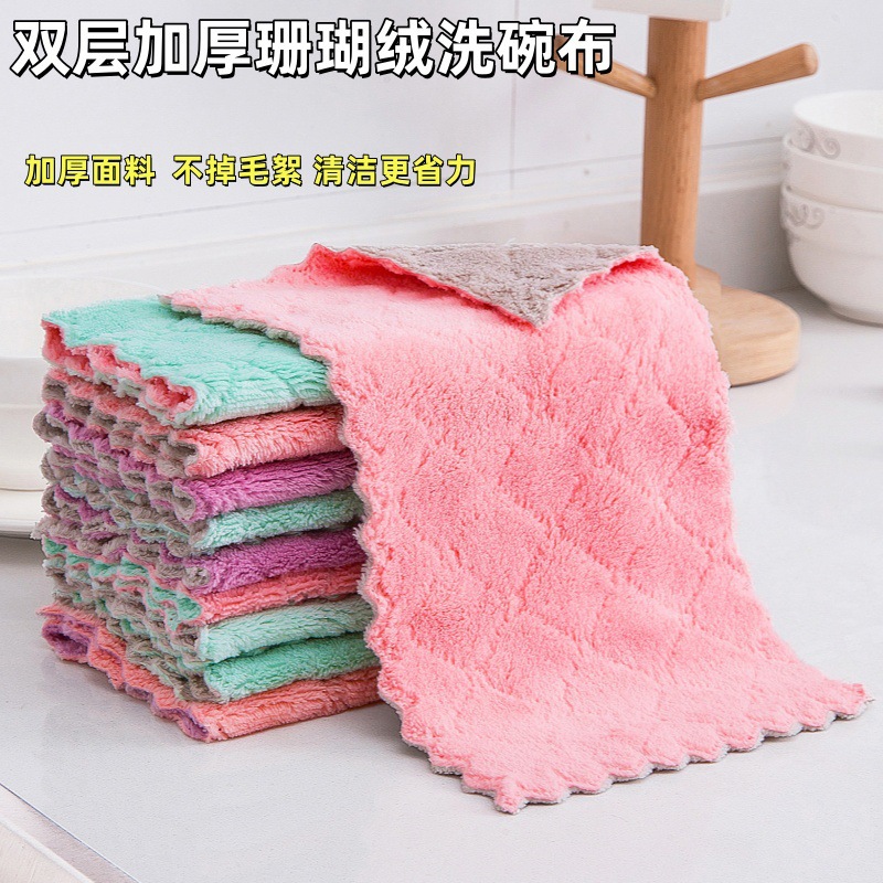 珊瑚绒加厚抹布吸水不沾油去污渍家用洗碗巾洗碗布百洁布不掉毛