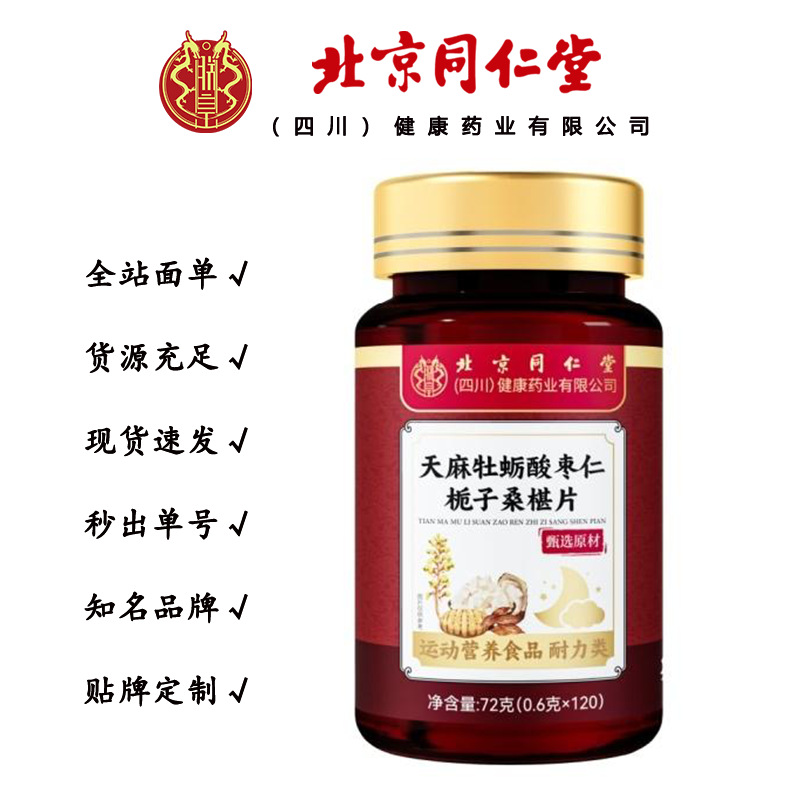 北京同仁堂天麻牡蛎酸枣仁栀子桑椹片 营养易吸收72g/瓶一件代发