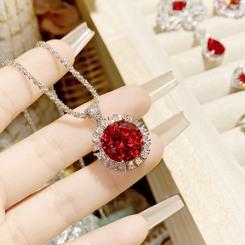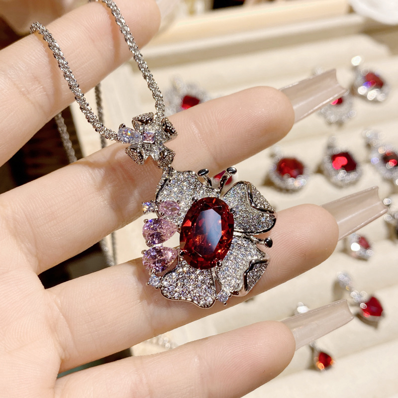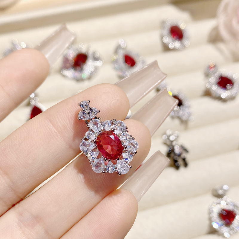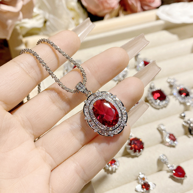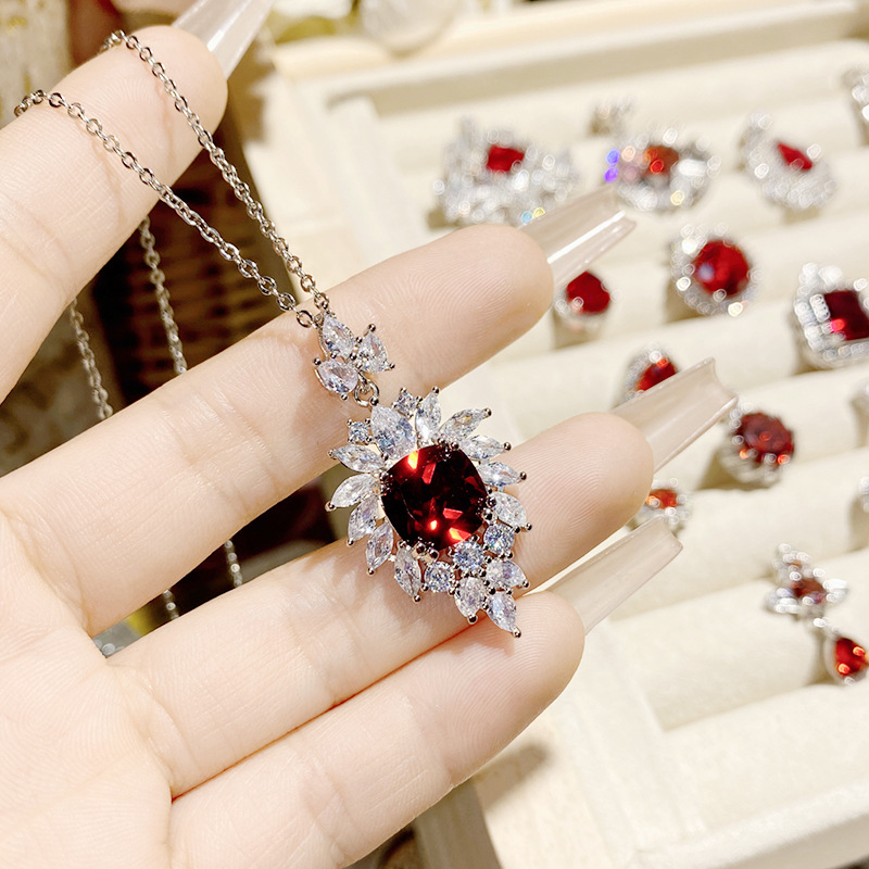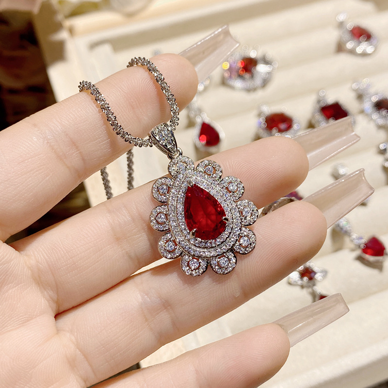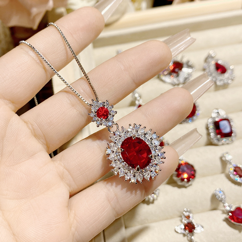 ツバキ中世高定ジュエリールビー指輪セット女性メッキ18k金満ドリル豪華赤コランダムネックレス