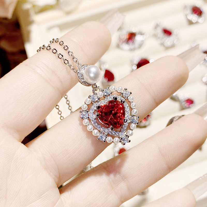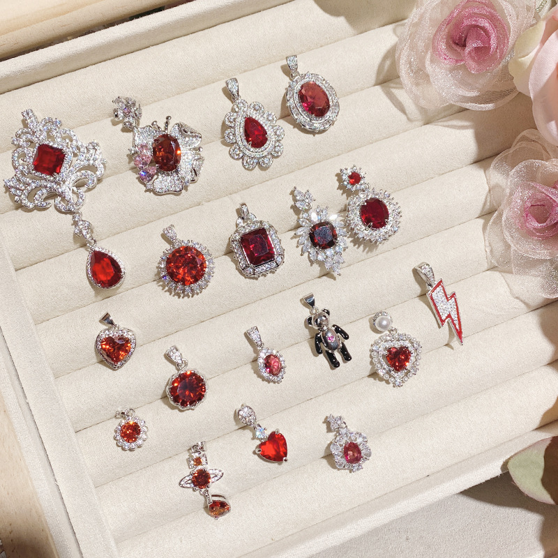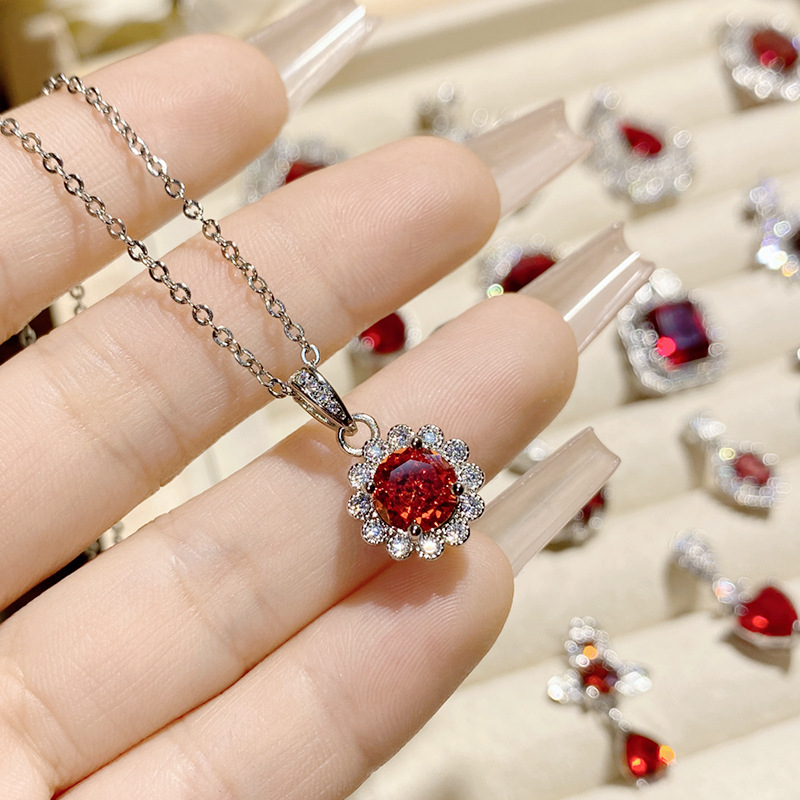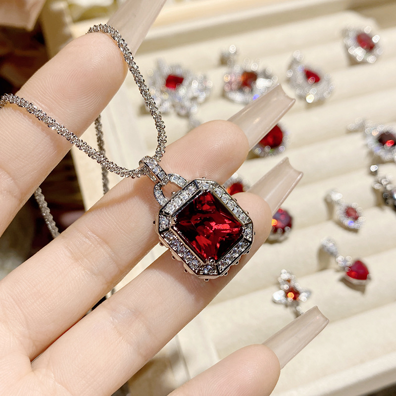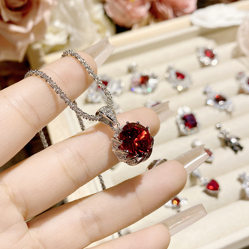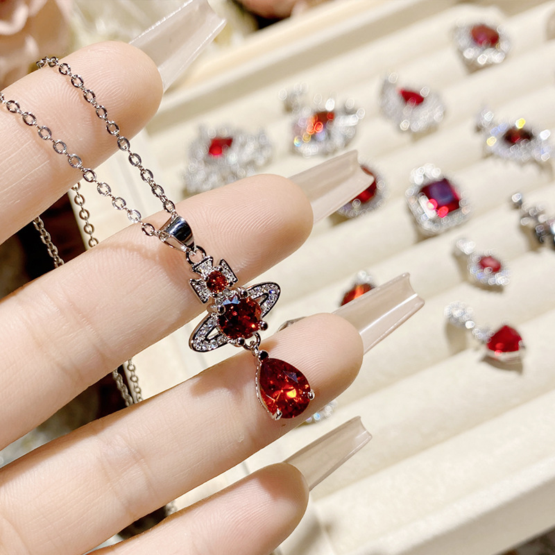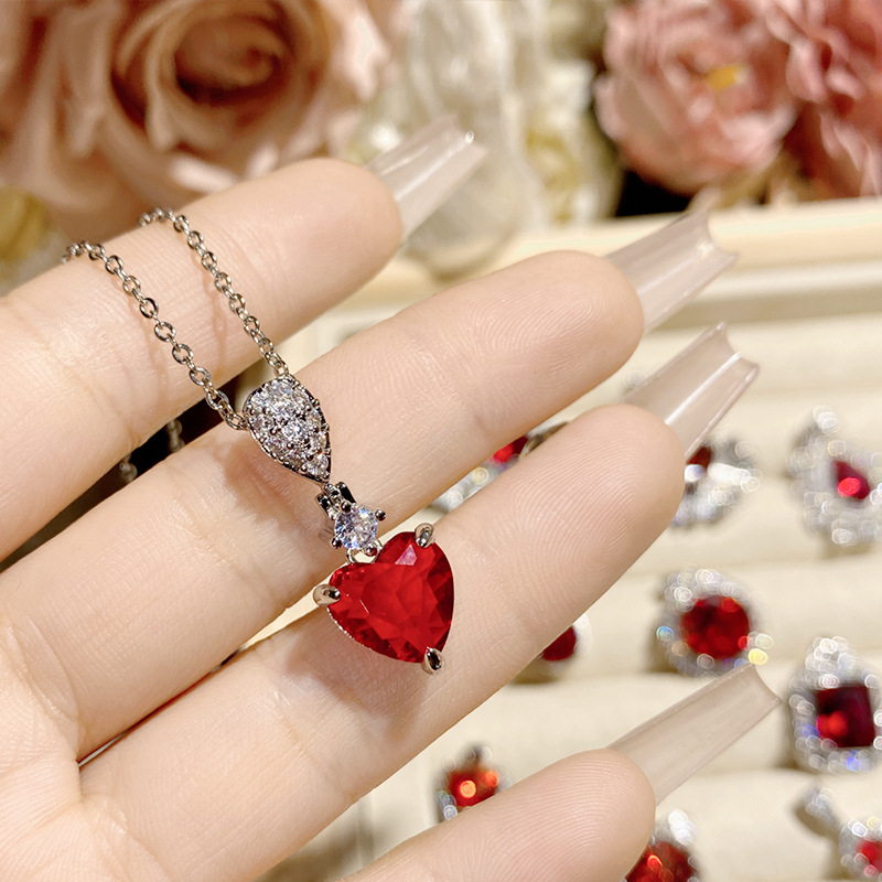 ツバキ中世高定ジュエリールビー指輪セット女性メッキ18k金満ドリル豪華赤コランダムネックレス