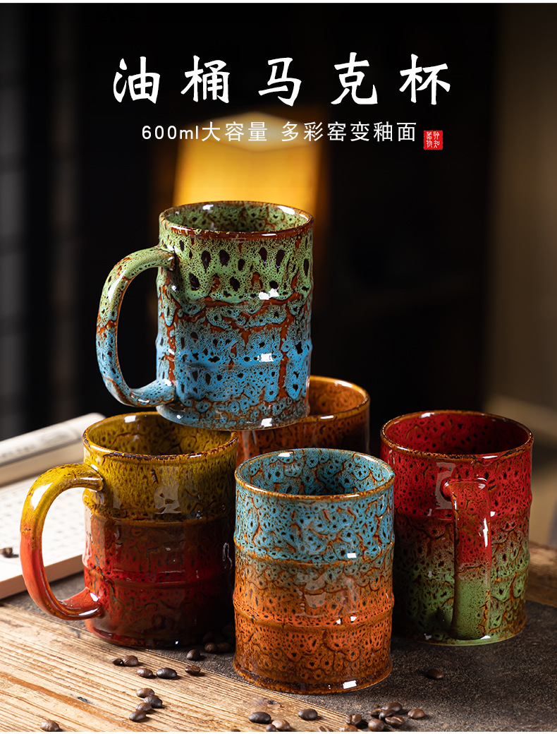 国境を越えたマグカップ600ml大容量水カップ高颜値窯変コーヒーカップins風セラミックドラム缶カップ