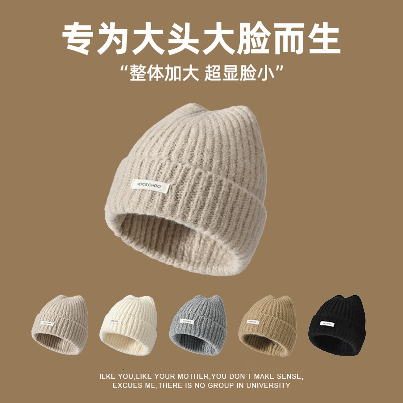 帽子の女性の太い毛糸の帽子は秋冬に厚い保温のニットの帽子の大きい頭の周りの耳の包みの頭の冷たい帽子の2023新型をプラスします。