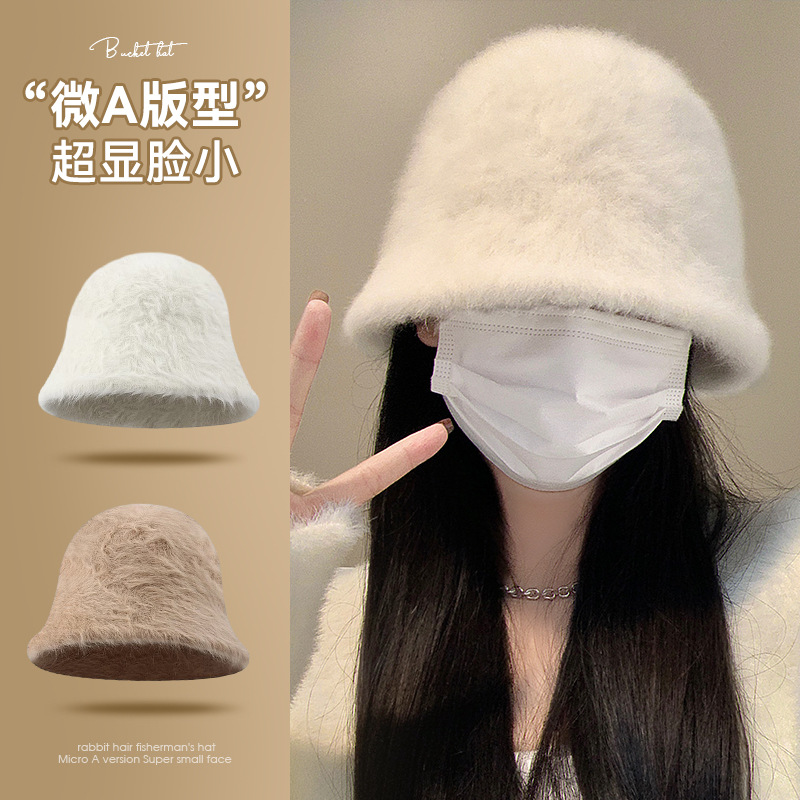 ウサギの毛の漁師の帽子の子供の秋冬のぬいぐるみの白いバケツの帽子の日系の大きい頭は顔の小さい保温の盆の帽子の潮を現します。